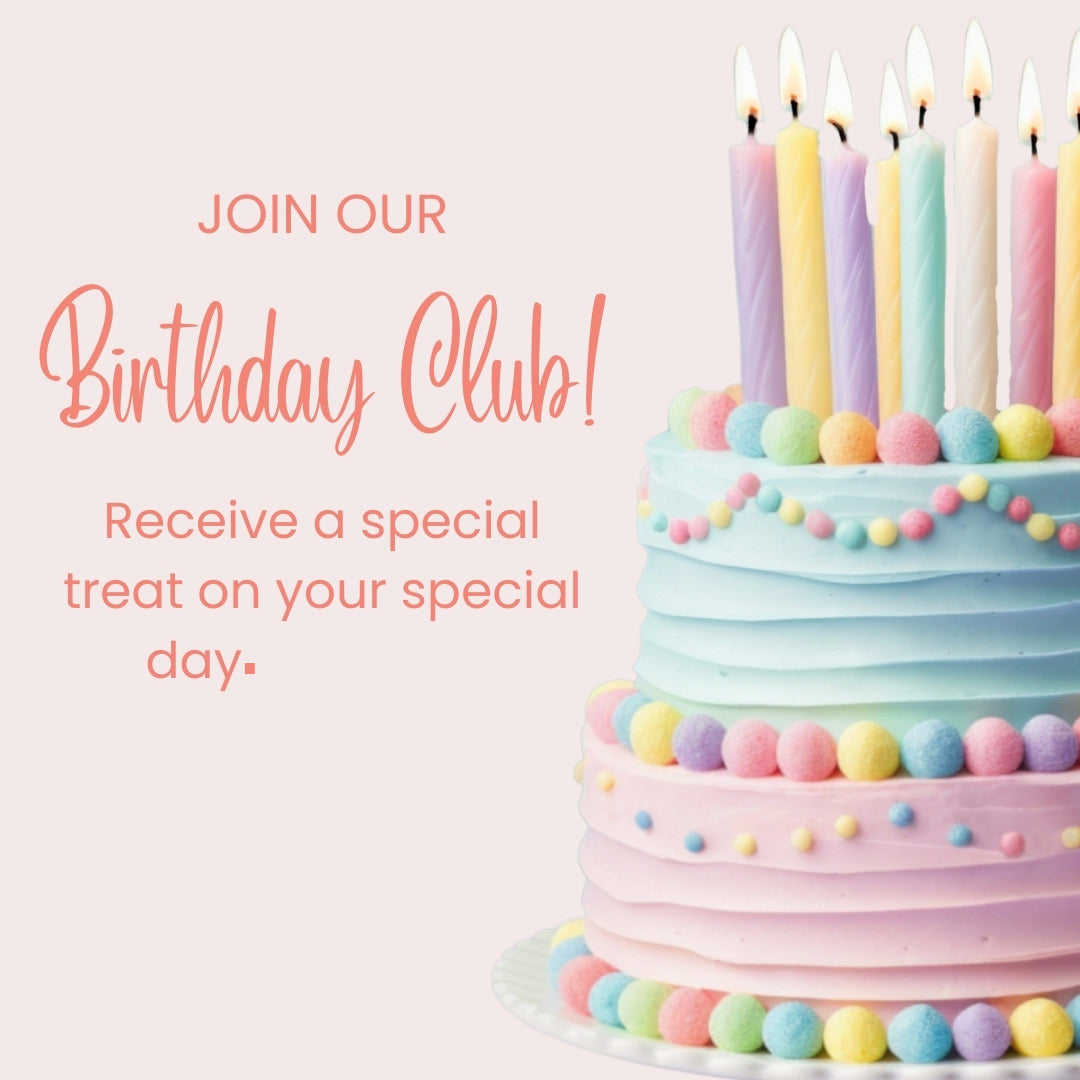 Join our birthday club for exclusive perks and surprises to make your day even more memorable!
