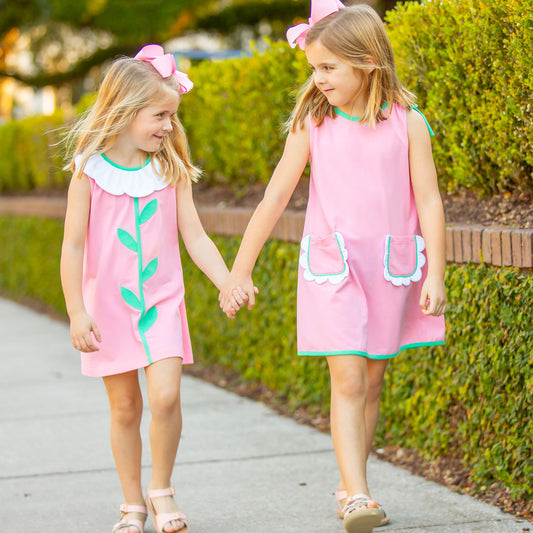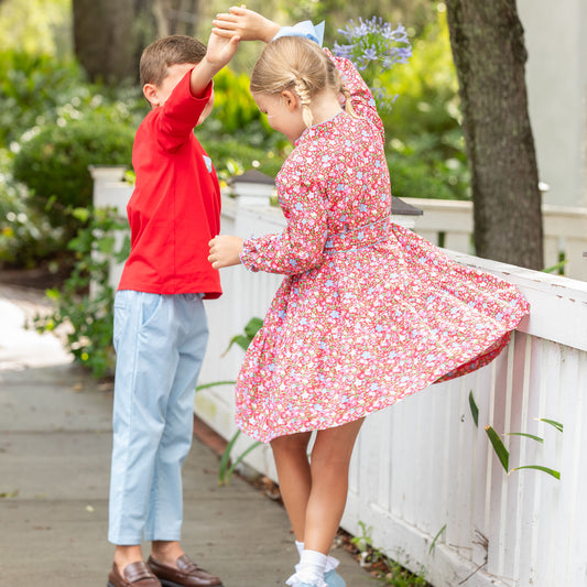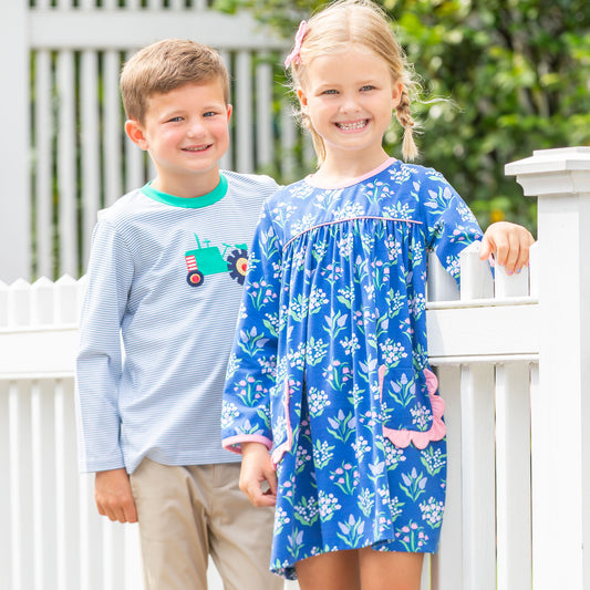 Girls Ruffle Neck Skirted Dress - Harvest Blooms
