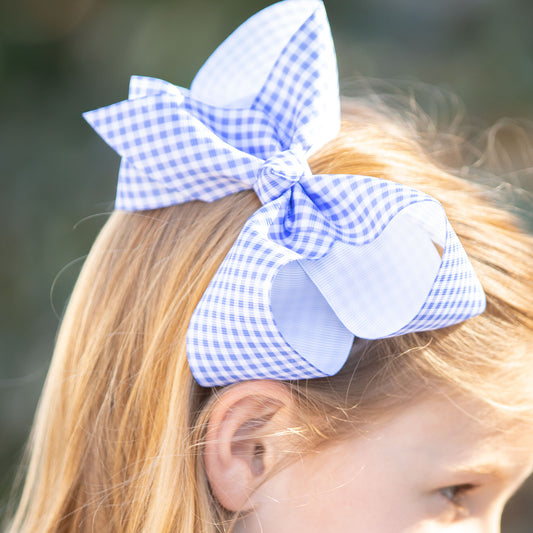 Blue Check Biggie Bow