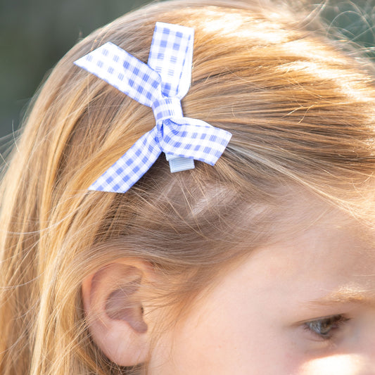 Blue Check Bitty Bow