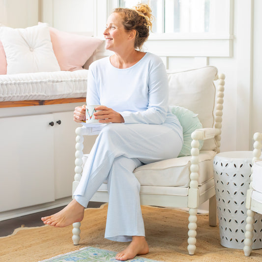 Womens Pima Loungewear Set - Blue Stripe