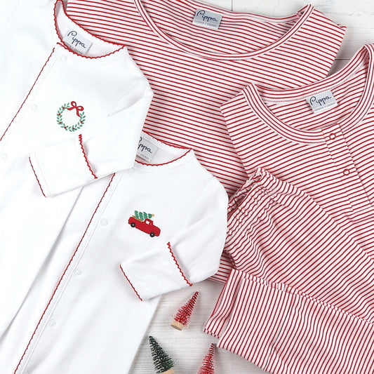 Womens Pima Loungewear Set - Red Stripe