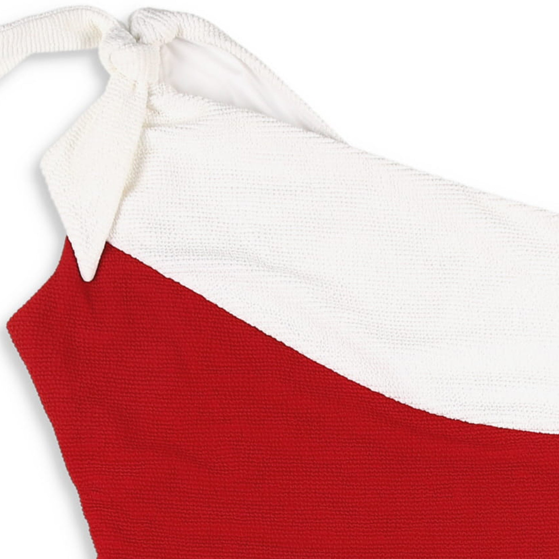 We are celebrating our wonderful country with this classic Americana Women's One Piece! Flattering and classic describe this bathing suit by Serendipity! With the preppy, two toned white and brilliant red textured fabric, the one shoulder strap with removable tie, and the removable bra cups, this suit is as functional as it is cute.