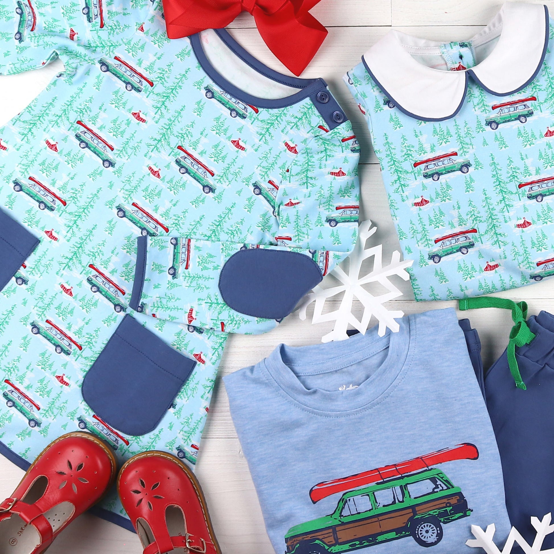 Perfect for all fun Fall and Winter activities especially for that first snow of the season, and of course for a trip to the cabin in the country! And with our Midnight Blue and Snow Day collections, he can have coordinating sibling outfits!
