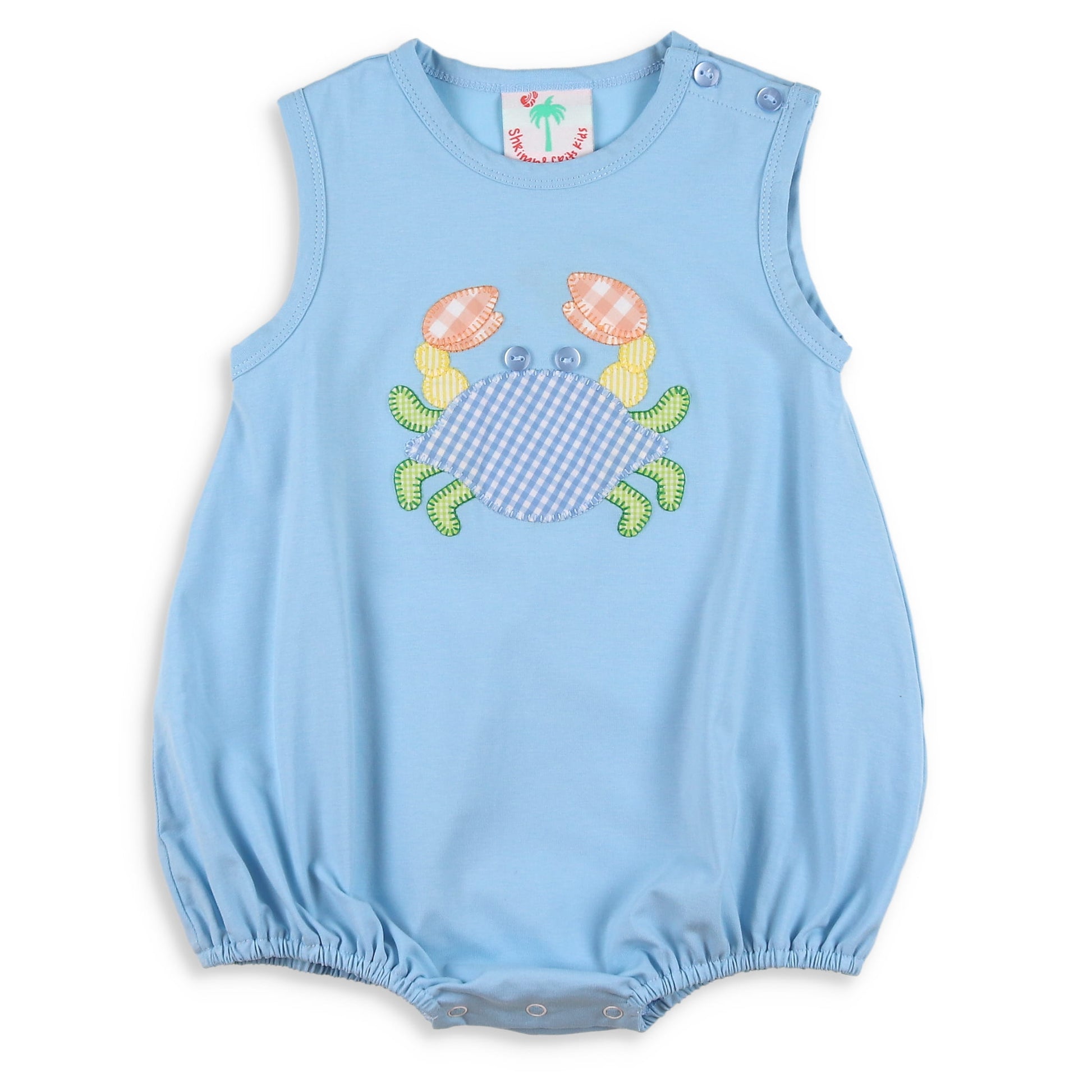 Their favorite beach memories with begin with this summer baby boy bubble, or big brother tee shirt, the Coastal Crab Bubble/Shirt, by Shrimp and Grits Kids, and a trip to the crabbing dock!