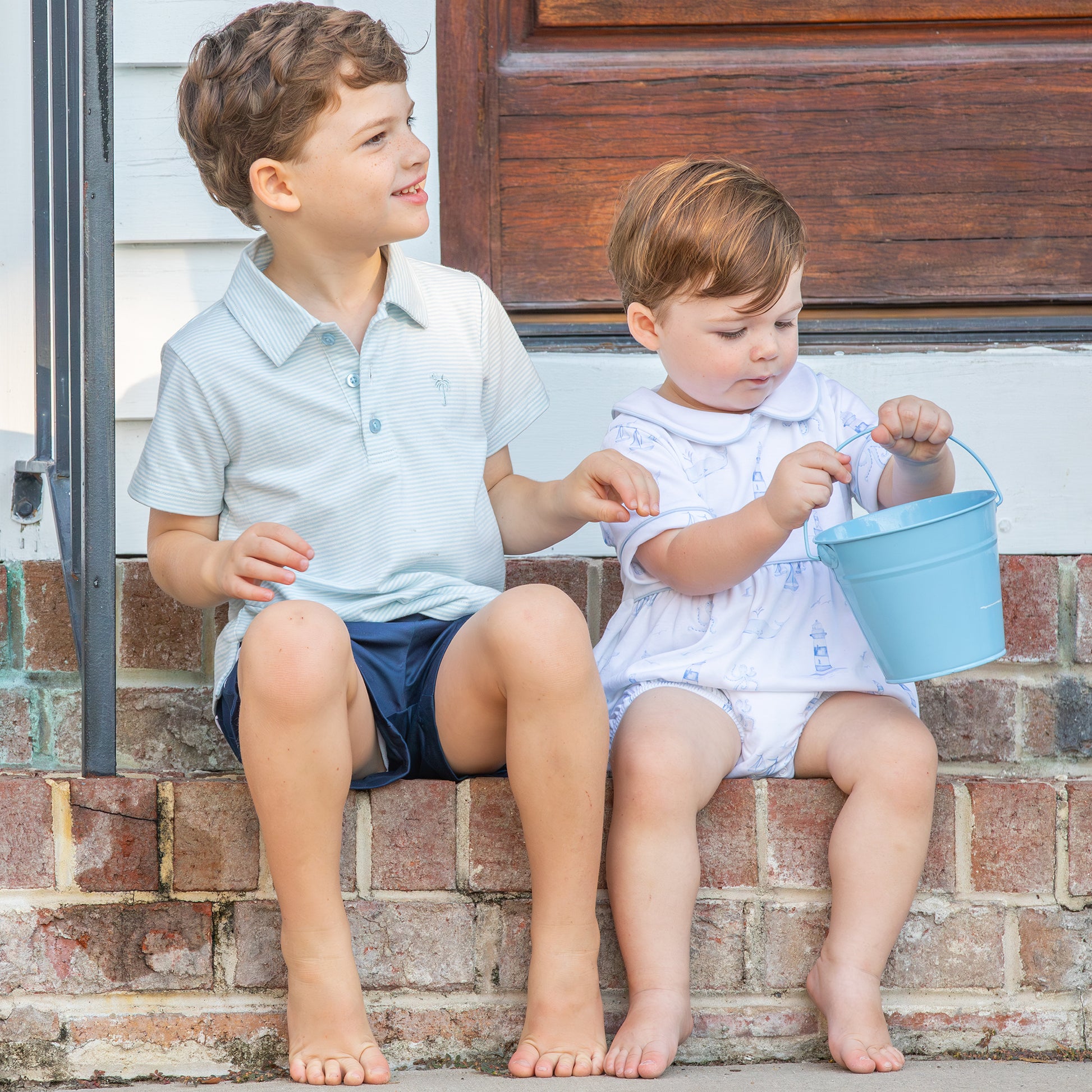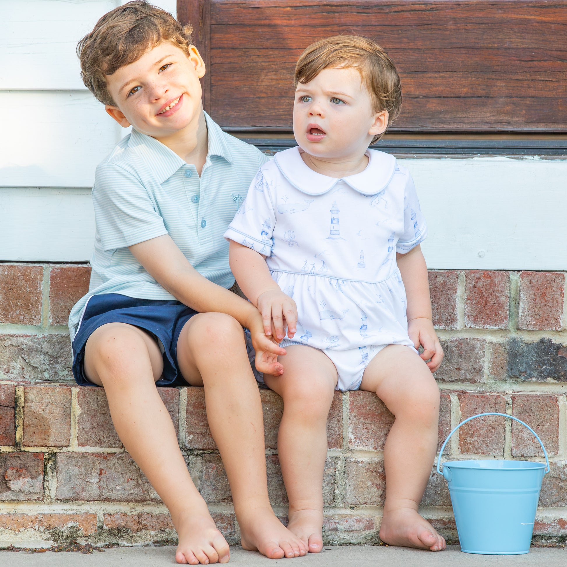 The perfect toddler or baby bubble go-to, especially for that Fourth of July beach or lake picnic or birthday party! It's so versatile he could even sleep in this boy bubble romper! And of course, with our Nautical Toile Collection he can match his siblings.