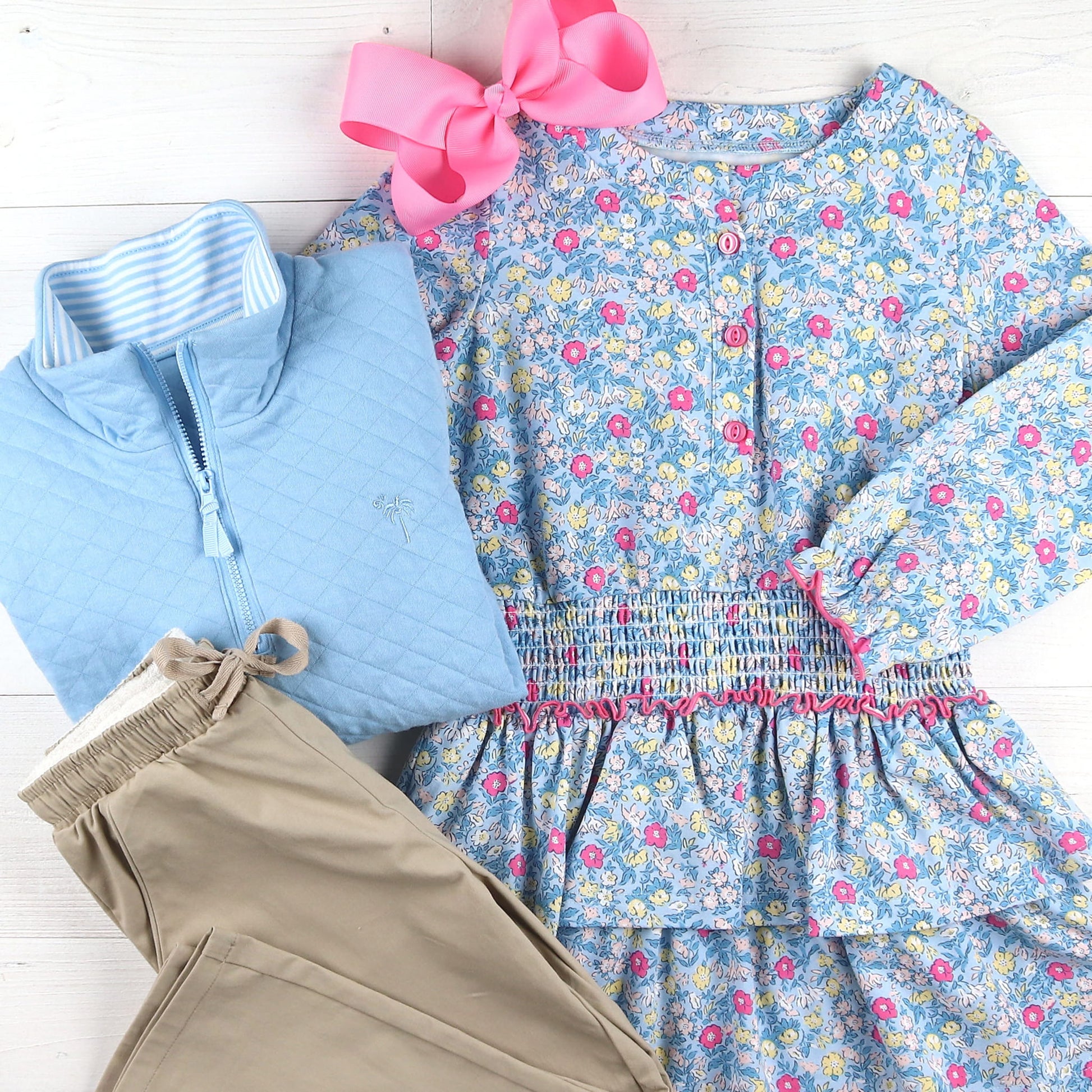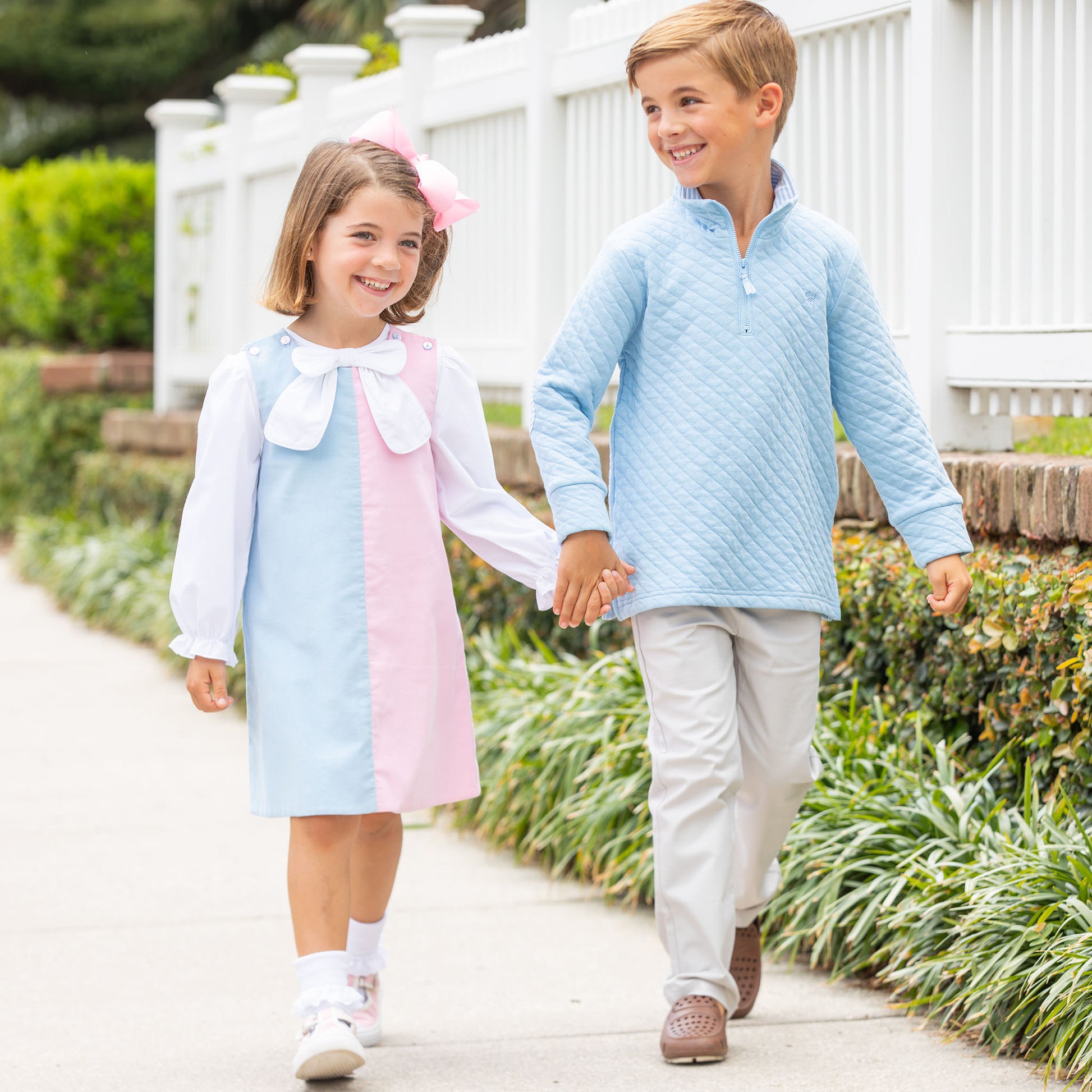 The soft and comfortable fabric makes it the perfect accessory for his wardrobe. Pair with any of our Shrimp pants, khakis, or jeans. Siblings can have matching outfits with the Blue Lagoon collection.