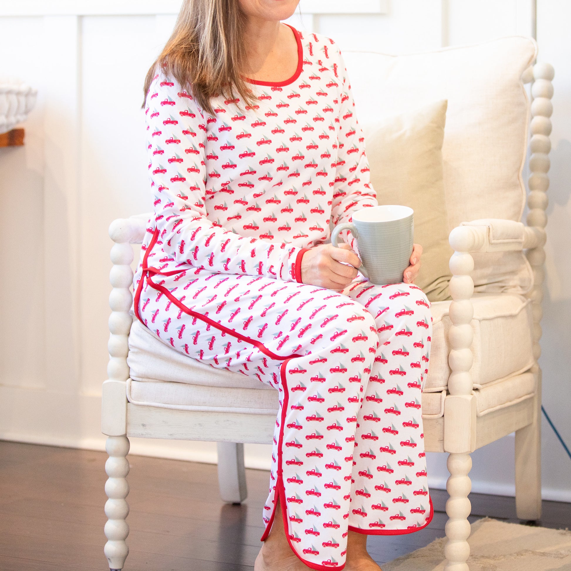 There's nothing like the excitement of choosing a Christmas tree to begin the holiday adventures! You will want to celebrate the most wonderful time of the year with your kids in this adorable Christmas Trucks Pima Women's Loungewear by Pippa.