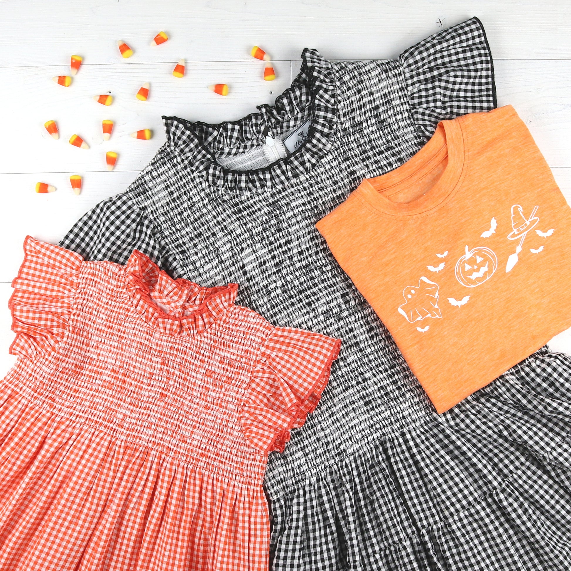 This versatile, wear anytime dress is perfect for a fall picnic, a Halloween party, or an early fall football game, especially if your favorite team sports these colors! And matching with your mini has never been more stylish! Make sure to shop the Girls Dress-Black Check by Ella Gray for your daughter! And with our Check Collection, you can also find coordinating sibling outfits for the perfect photo opp!