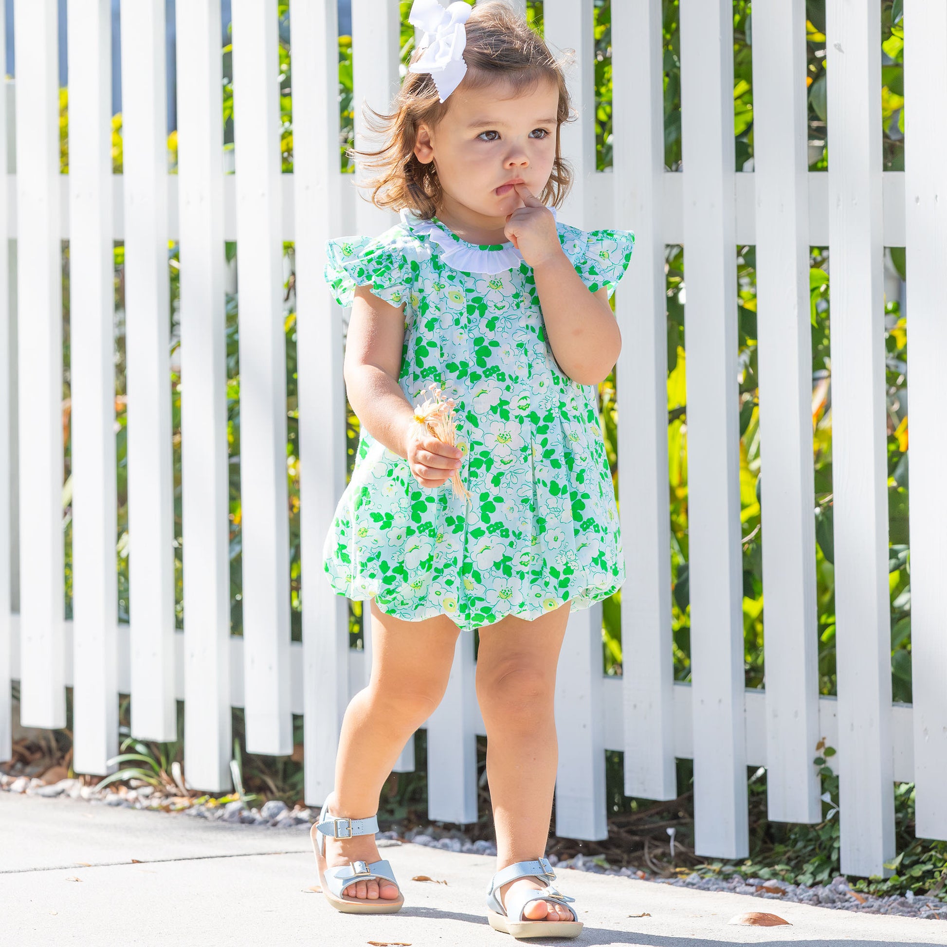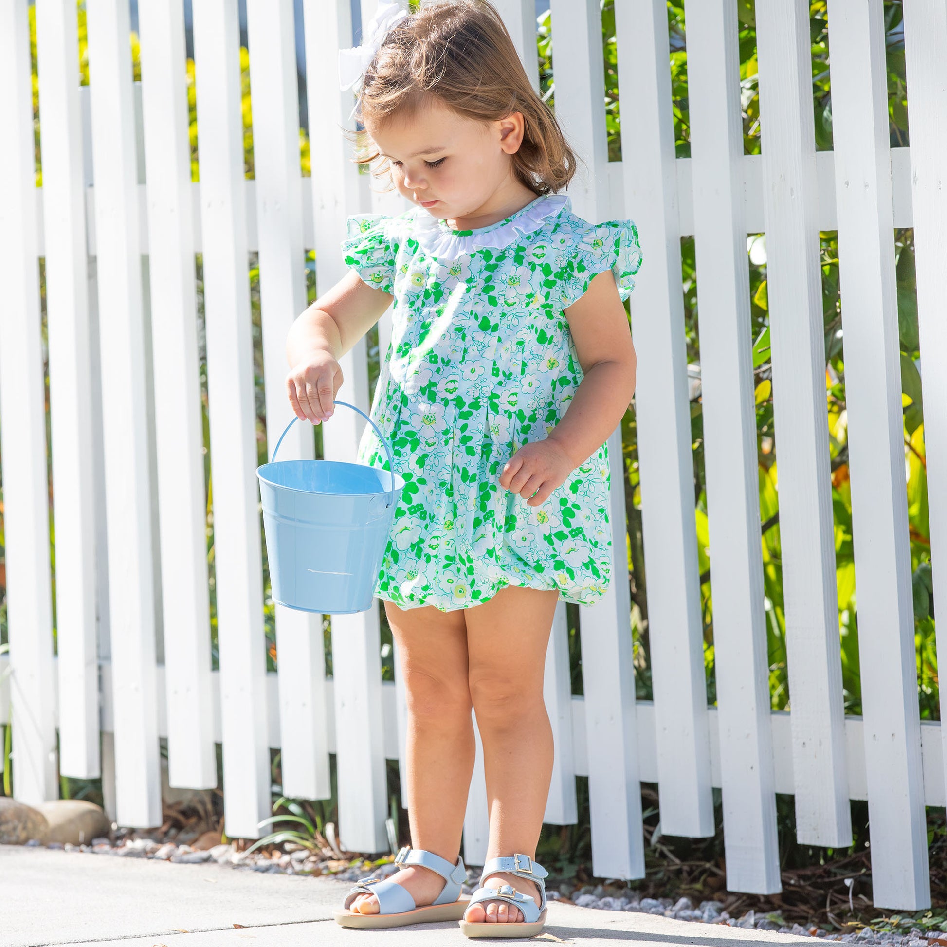 Vintage look at its best! Nothing says spring better than this Blue Blossom Bubble from Shrimp and Grits Kids, and is a must for her favorites wardrobe.
