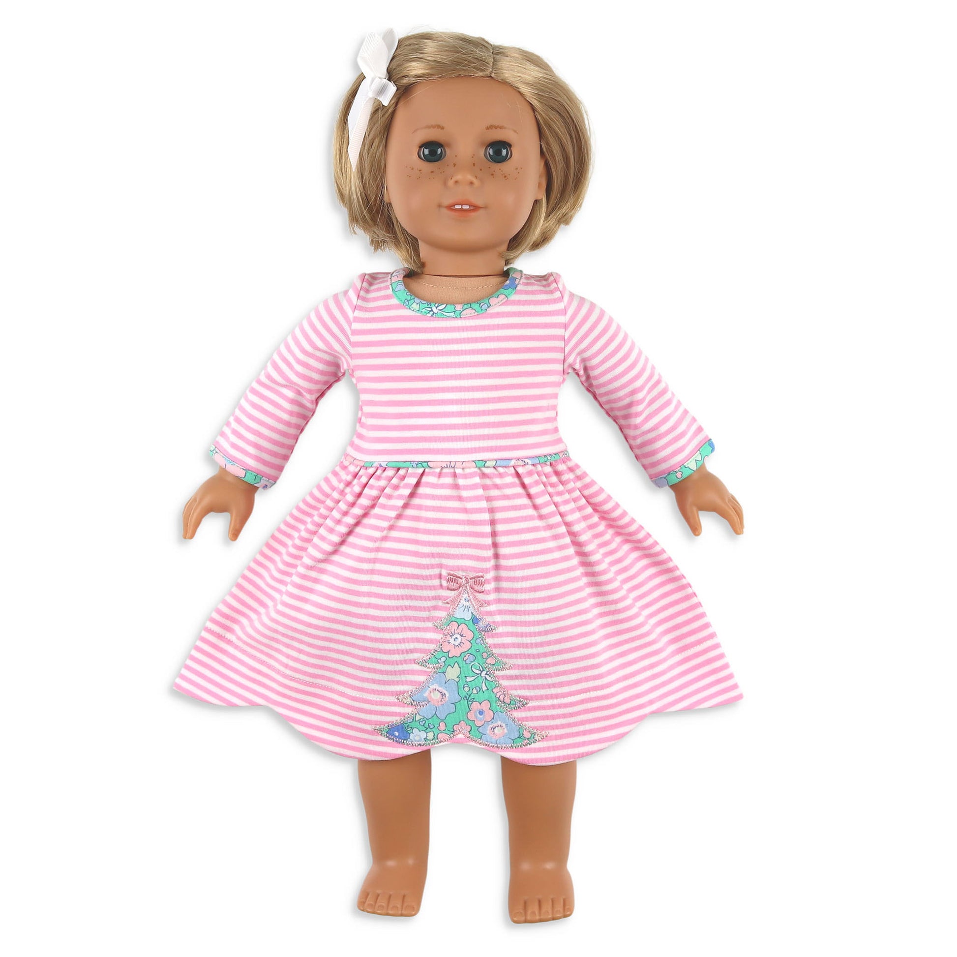 Girls Christmas Tree Doll Dress - Pink Stripe