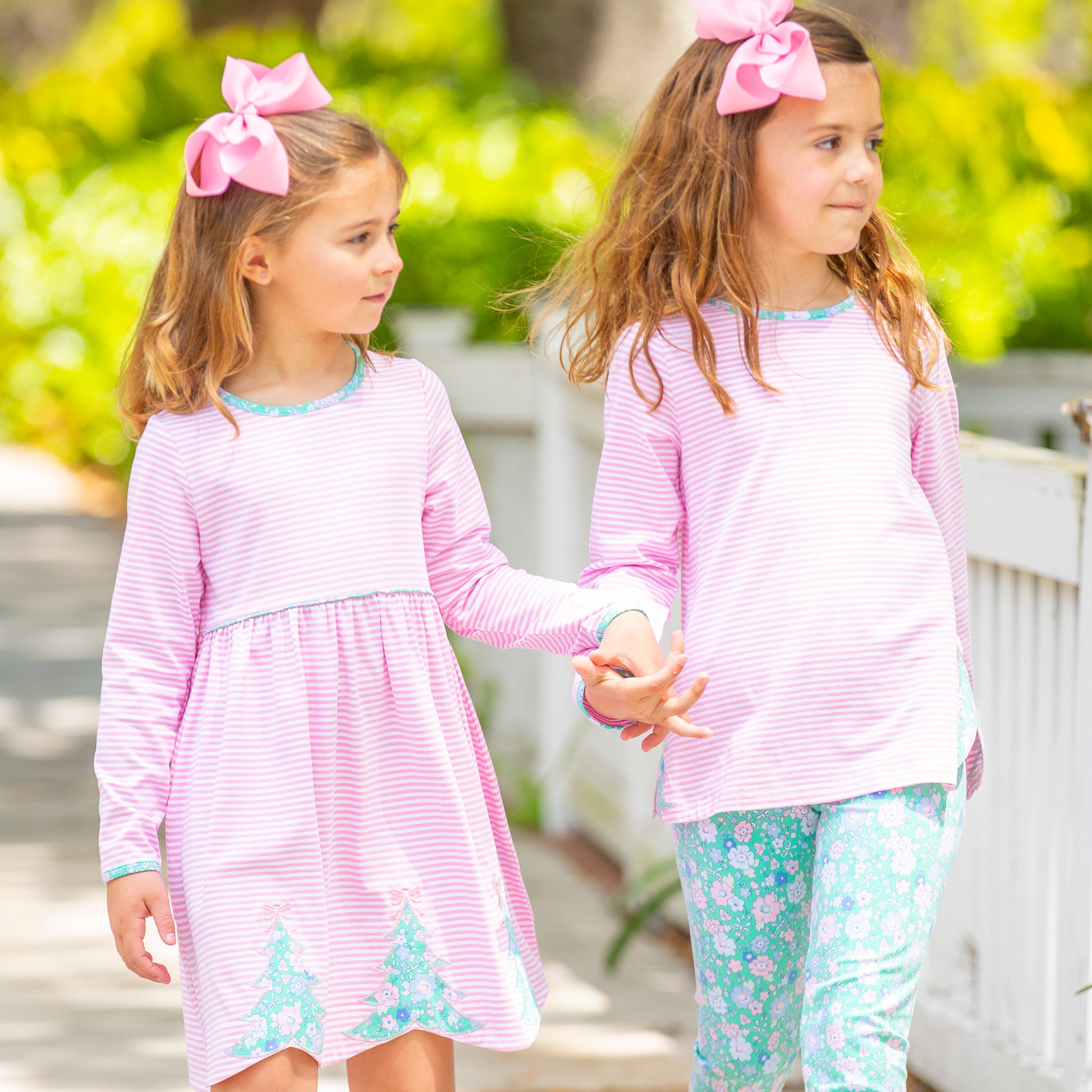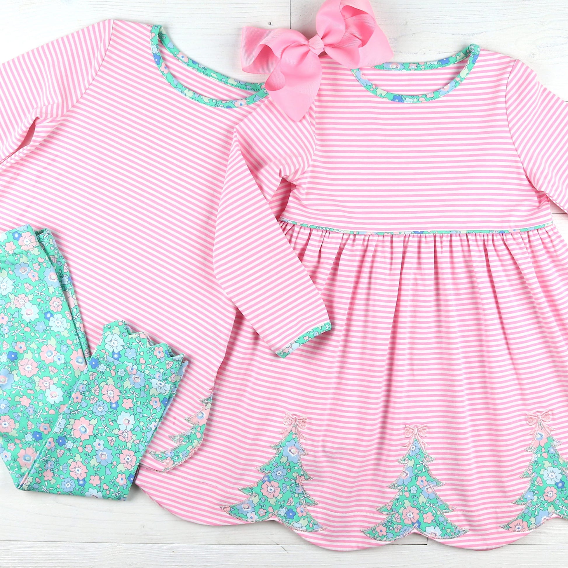 Perfect for fun Fall and Winter activities, especially Christmas parties and activities. And with our Garden Green, and Pink Stripe collections, she can have coordinating sibling outfits!