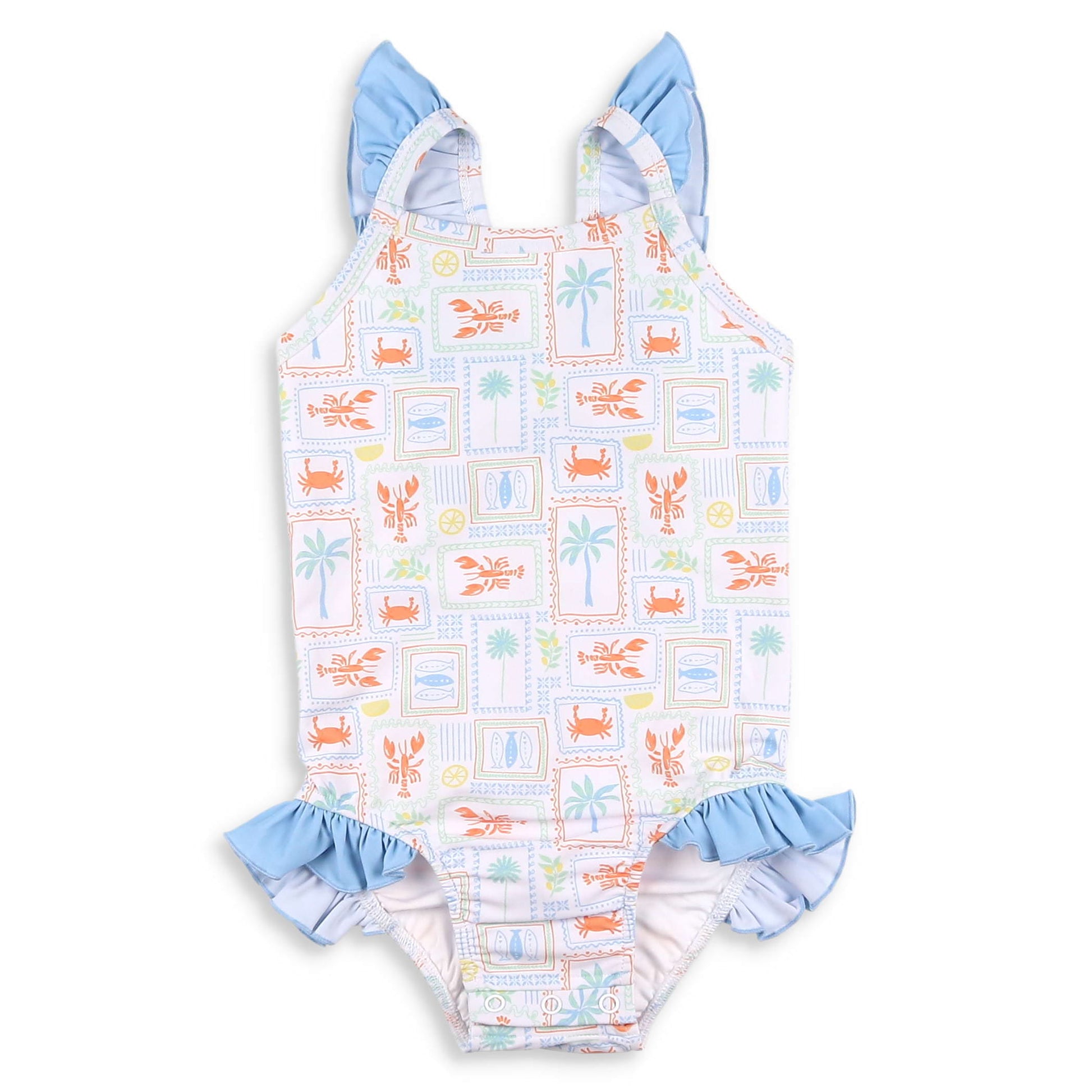 Like the colorful and succulent seafood in a coastal inlet, who wouldn't fall in love with this maritime girls Coastal Cove One-Piece and make it a favorite bathing suit?