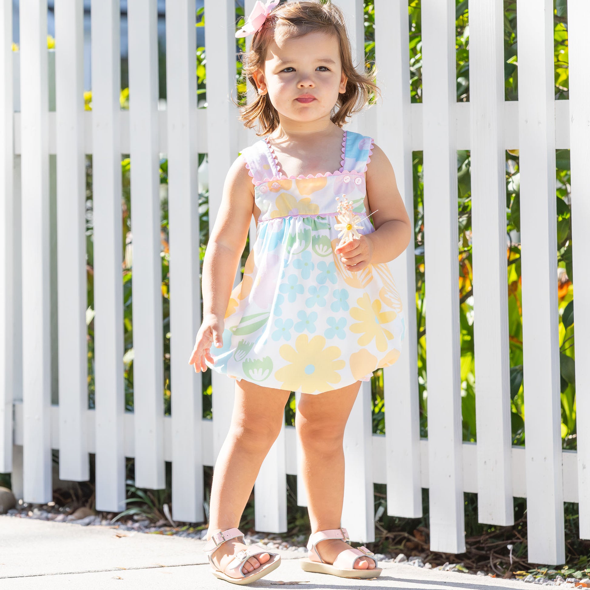 Just lookin for flower power fun and feeling groovy? If so, this girls Petal Party Bubble by Shrimp and Grits Kids, will fit the bill!