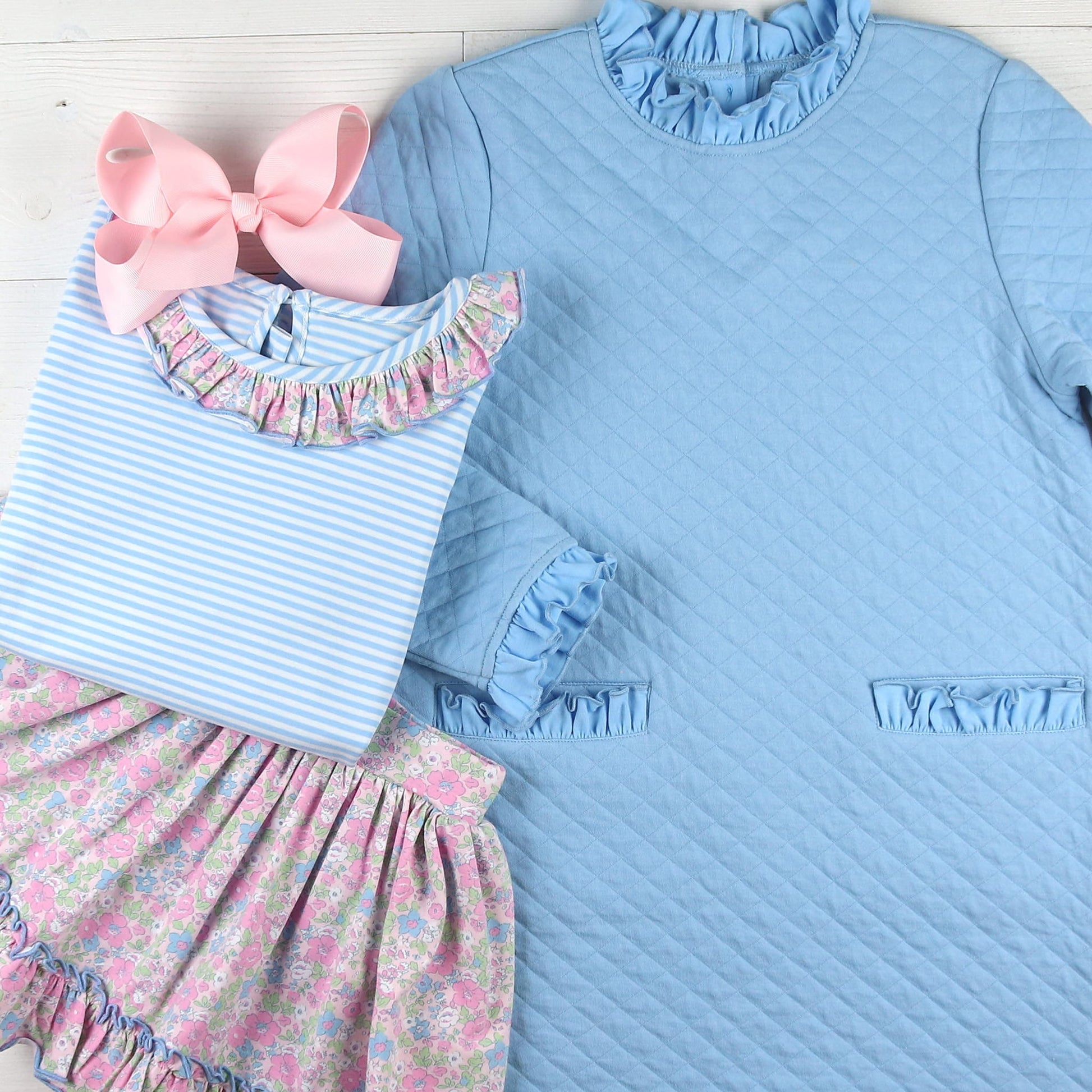 Sometimes you have to envision the pristine blue waters of the Blue Lagoon during the cloudy fall and winter skies. Your kids will feel the peacefulness in this comfortable Girls Quilted Dress-Blue Lagoon and it will become indispensable for those cooler days.