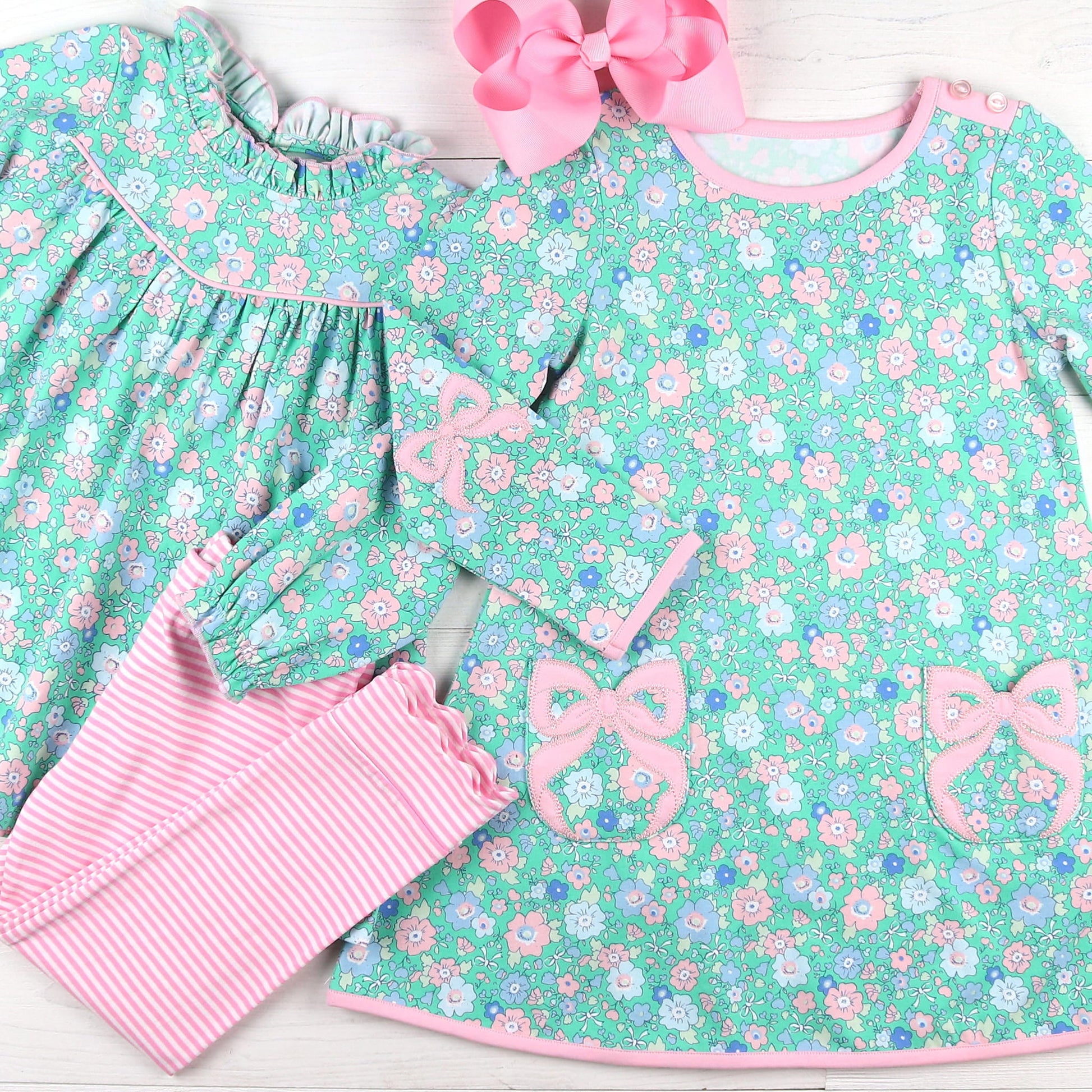 Perfect for fun Fall and Winter activities, even Christmas parties and activities. And with our Garden Green, Pink Stripe, Green Stripe, and Ballet Pink collections, she can have coordinating sibling outfits!