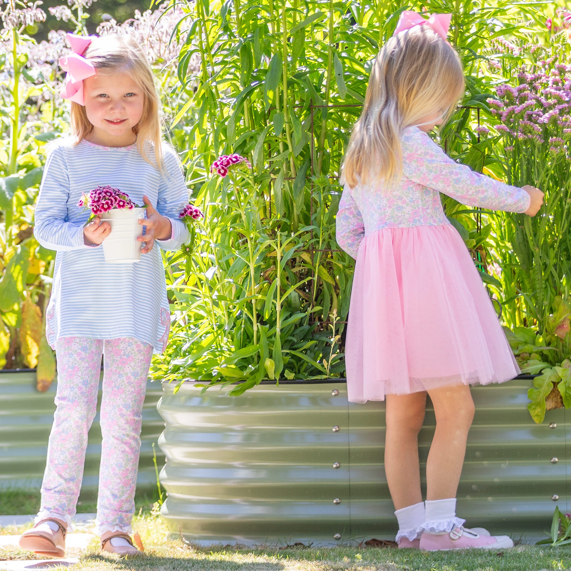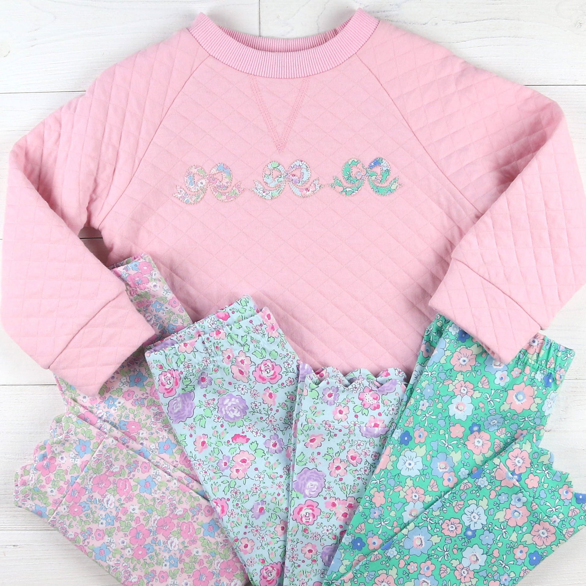 What girl isn't in love with pastel flowers, especially in pinks and blues? And how whimsical and adorable are these Girls Scallop Leggings-Blushing Blooms by Serendipity?