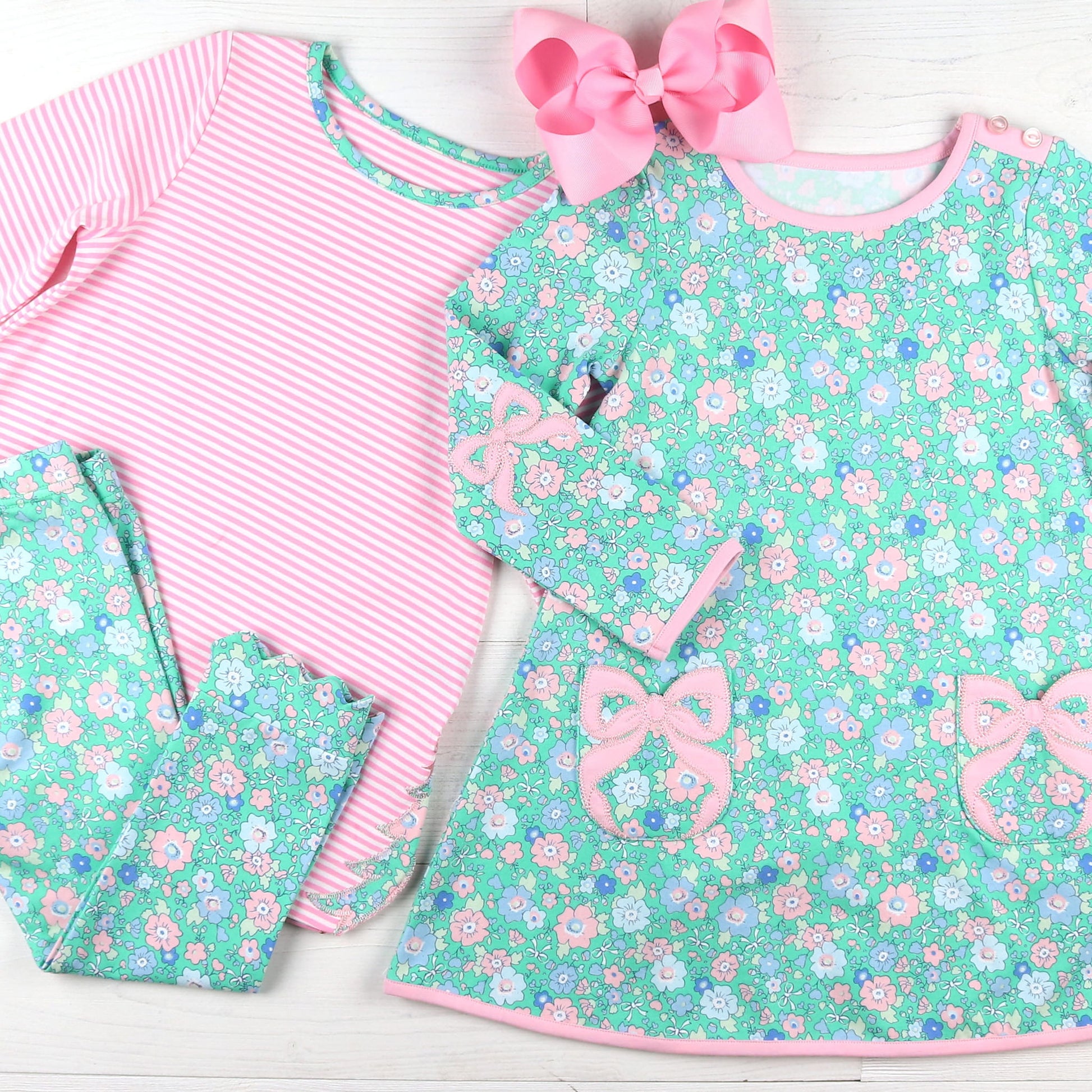 Perfect for fun Fall and Winter activities, even Christmas parties and activities. And with our Garden Green, Green Stripe, and Ballet Pink collections, she can have coordinating sibling outfits!