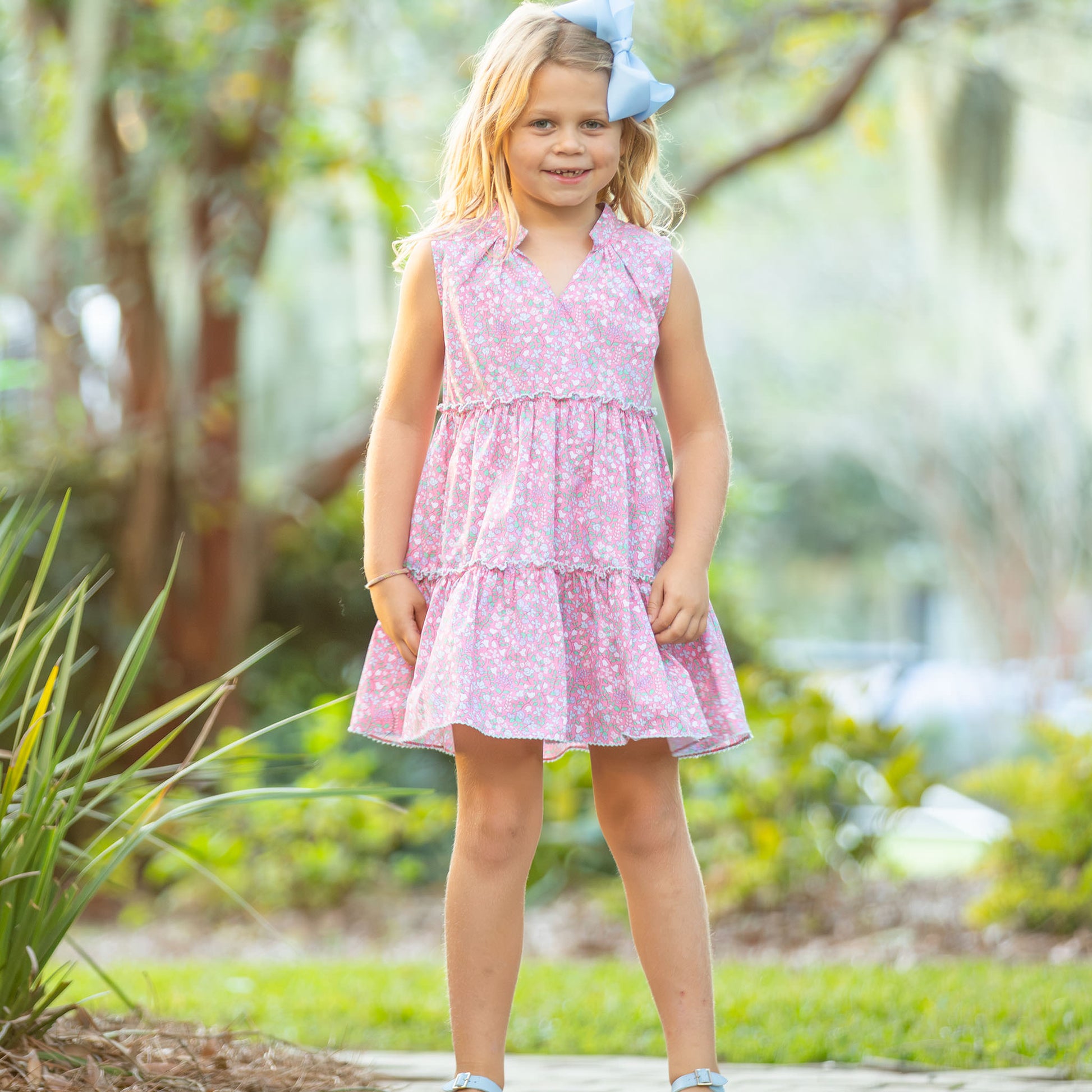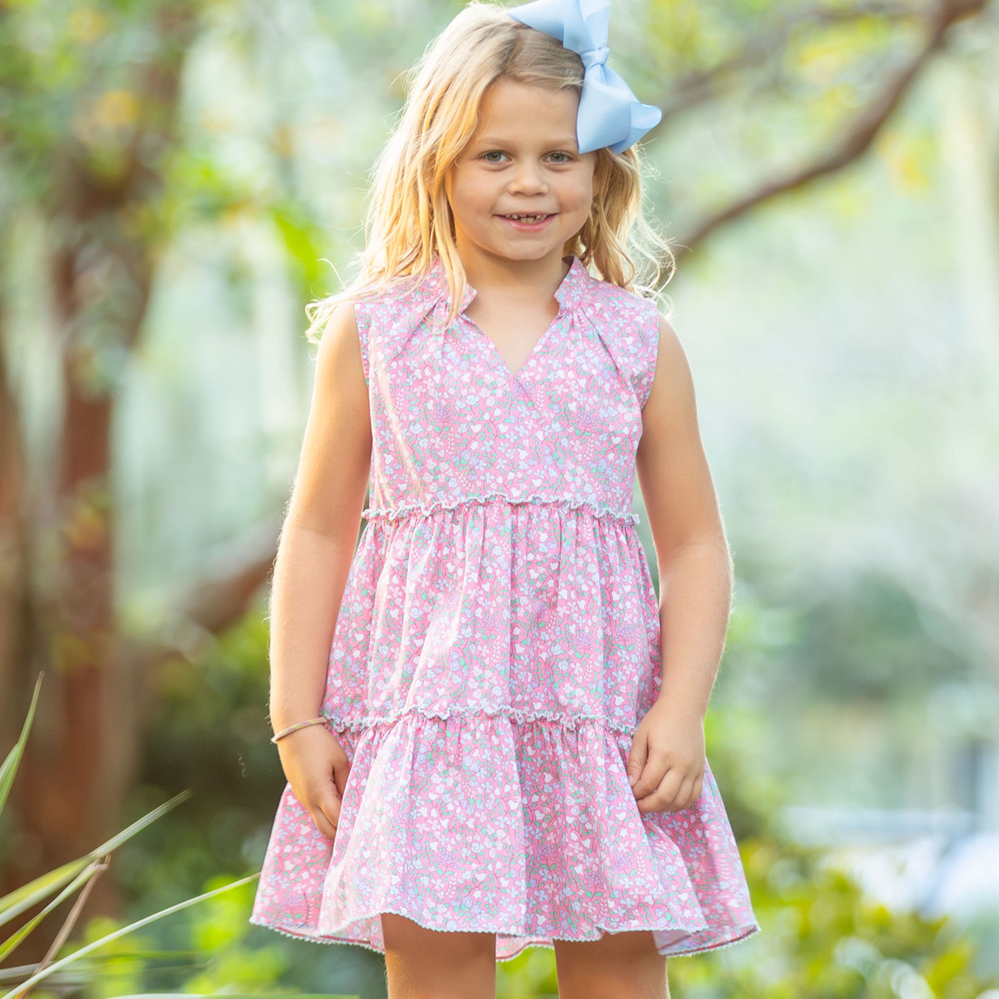 Vintage look at its best! A classic staple for enjoying the spring and summer activities, the girls Sugar Bloom Tier Dress from Shrimp and Grits Kids, is a must for her adventurous wardrobe.