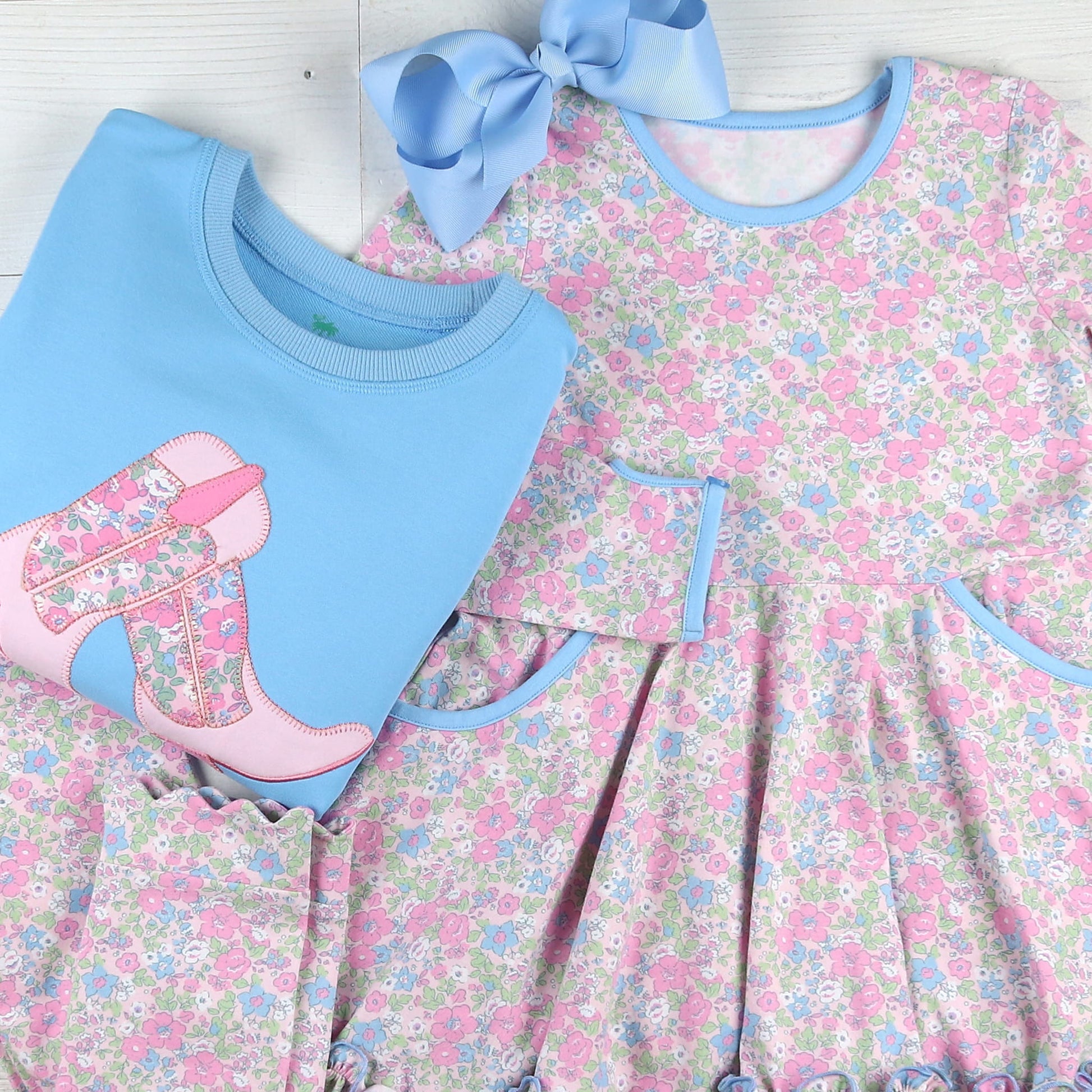 What girl isn't in love with pastel flowers, especially in pinks and blues? And this whimsical and adorable Girls Twirl Dress-Blushing Blooms by Serendipity is destined to become her favorite!