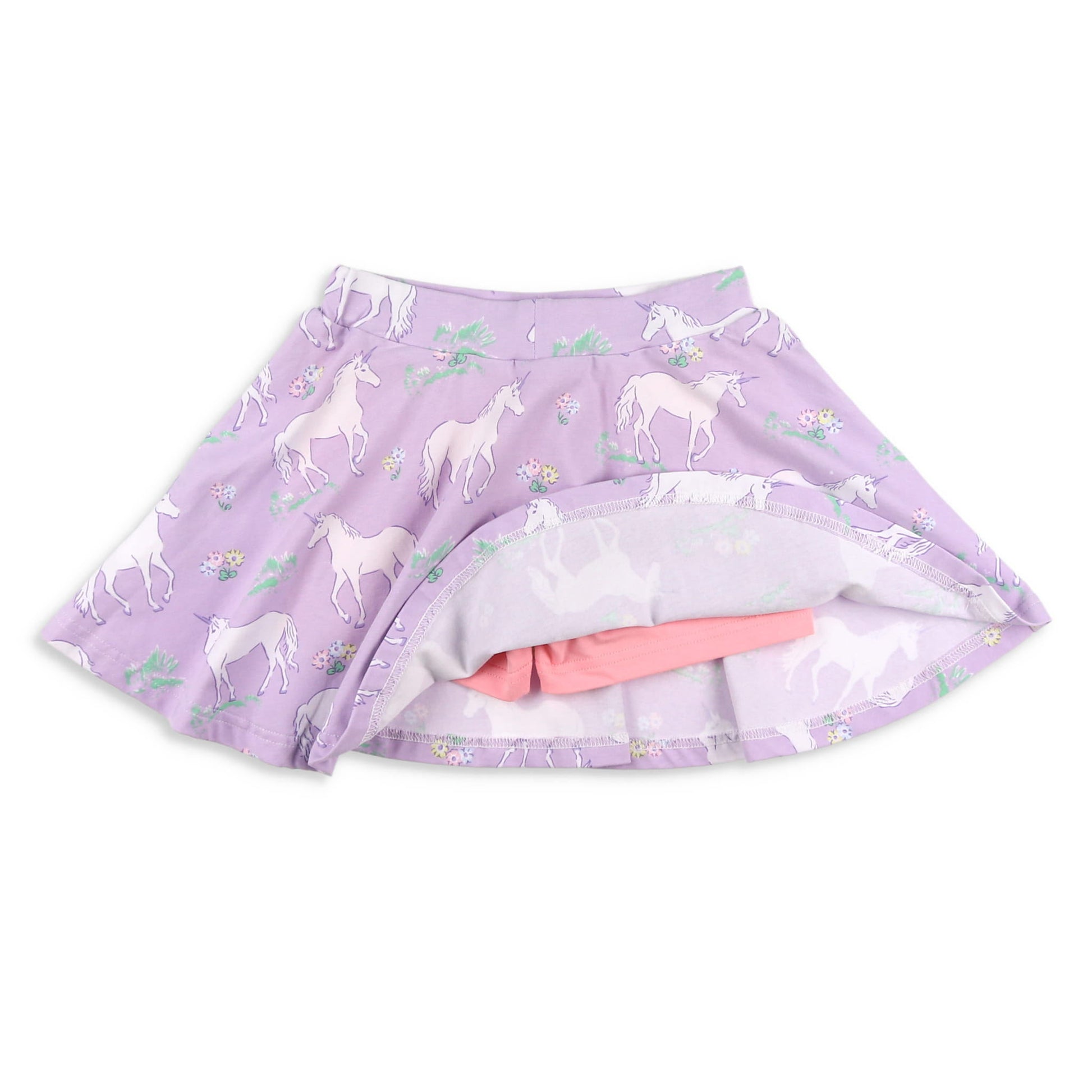 Unicorns are a symbol of purity, innocence, and power in Celtic mythology and are depicted as peaceful and graceful. What graceful girl isn't in love with unicorns? This sweet Girls Twirl Skort-Unicorn from Serendipity should become a favorite!