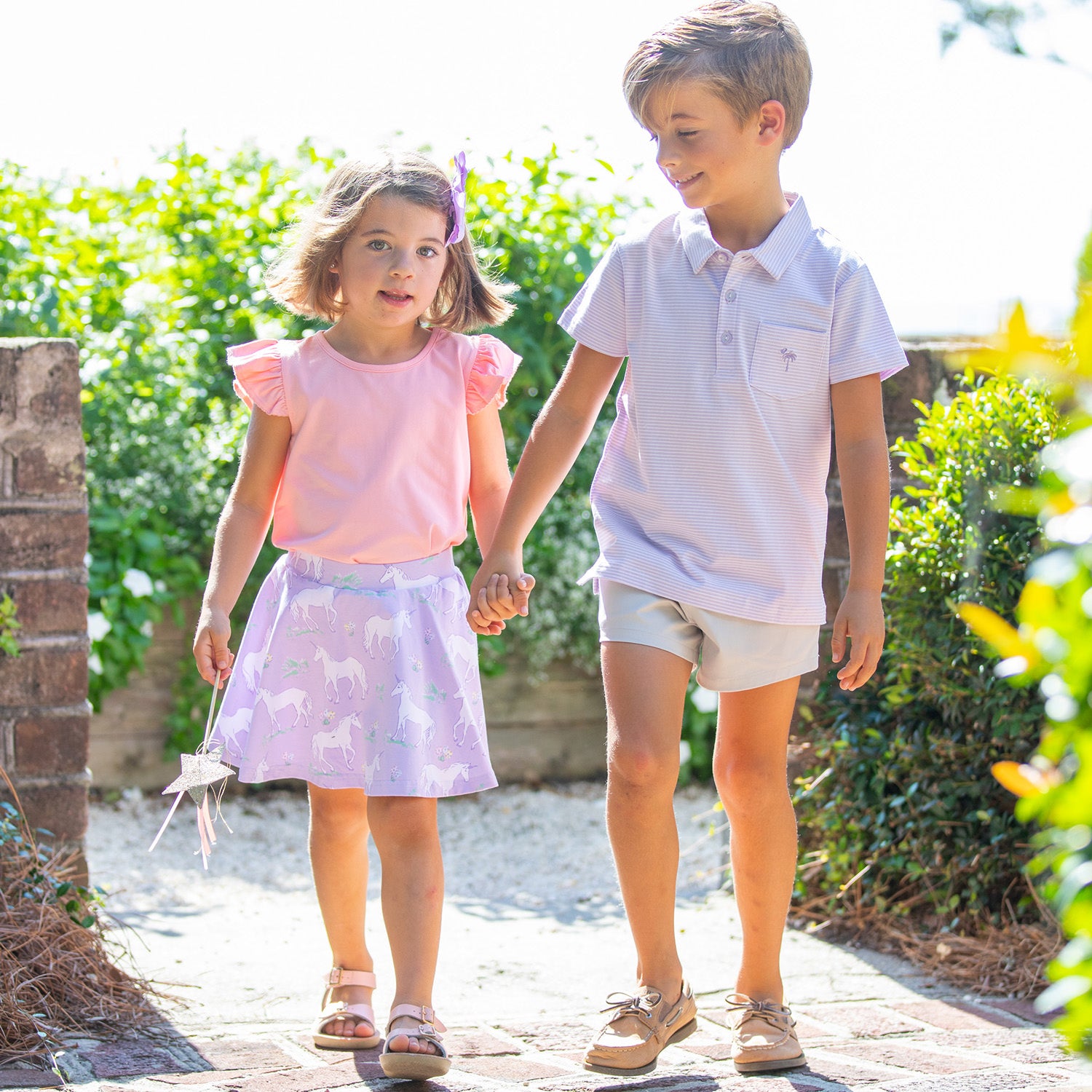 Pair with our Girls Ruffle Neck Polos for a great look. She will be so ready to celebrate the beauty of these mythical creatures. Perfect for all fun activities, and for enjoying the spring and summer weather! And with our Unicorn collection, the matching sibling outfits will make a great photo opp!