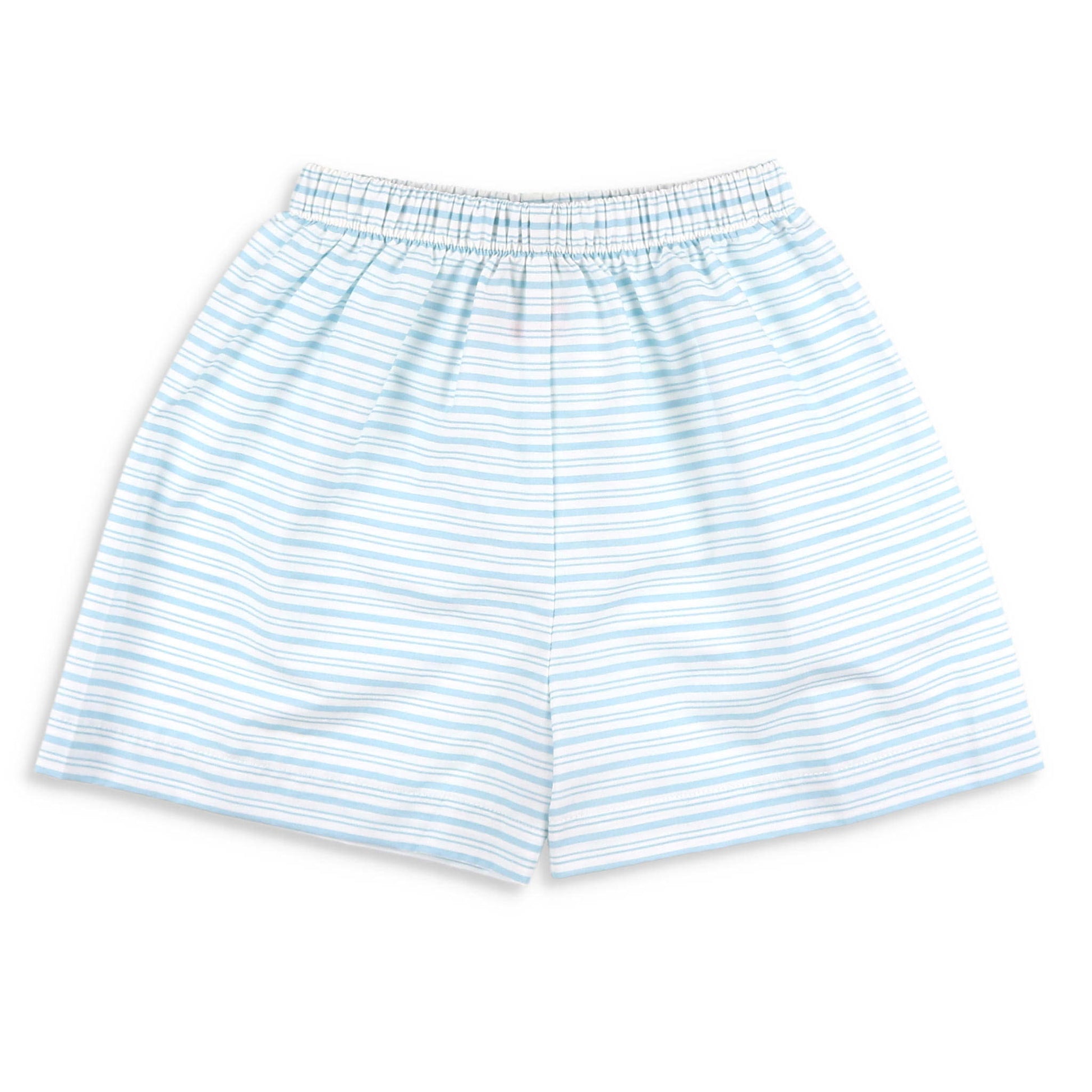 There's nothing crabby about these handsome, classic style, Gone Crabbin' Striped shorts by Shrimp and Grits Kids! They feature soft horizontal ocean blue and white striped cotton fabric along with the most comfortable elastic waistband, and can pair with many of our graphic tees, polos, or pocket t shirts.