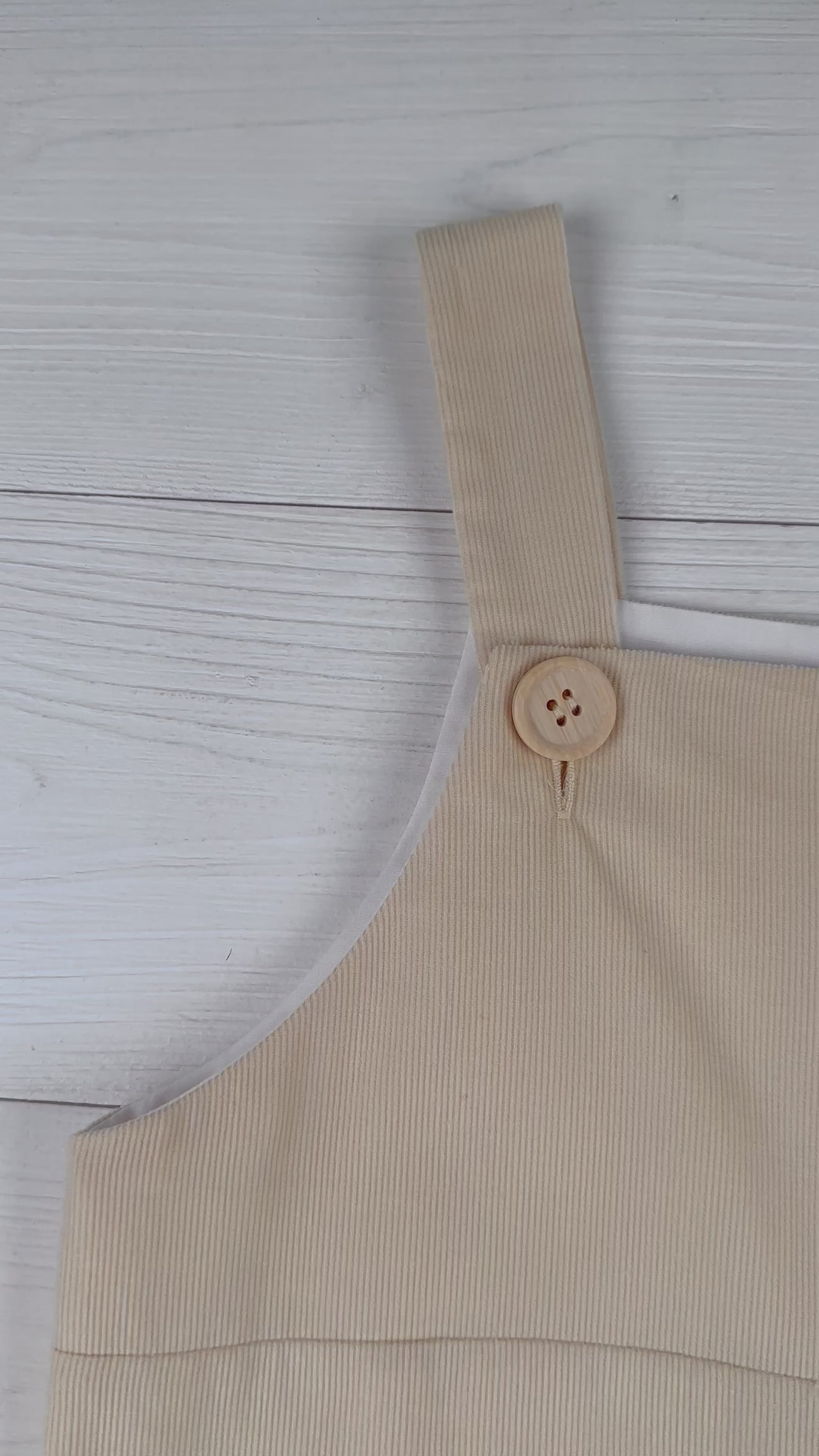 The versatile khaki color, along with the fine wale corduroy fabric, and the custom buttons at the straps, portray such a happy retro look! They will become a staple for your little one's wardrobe.
