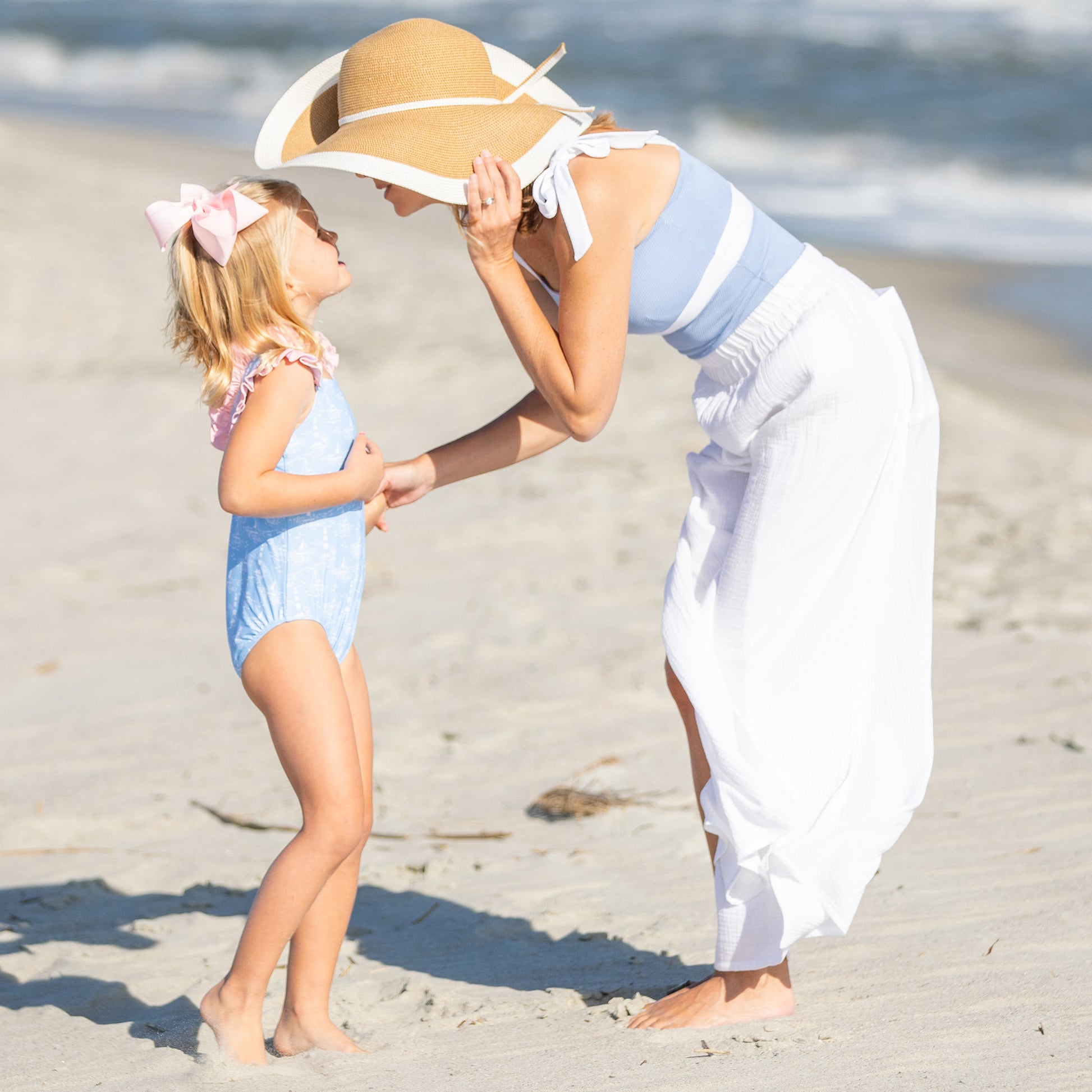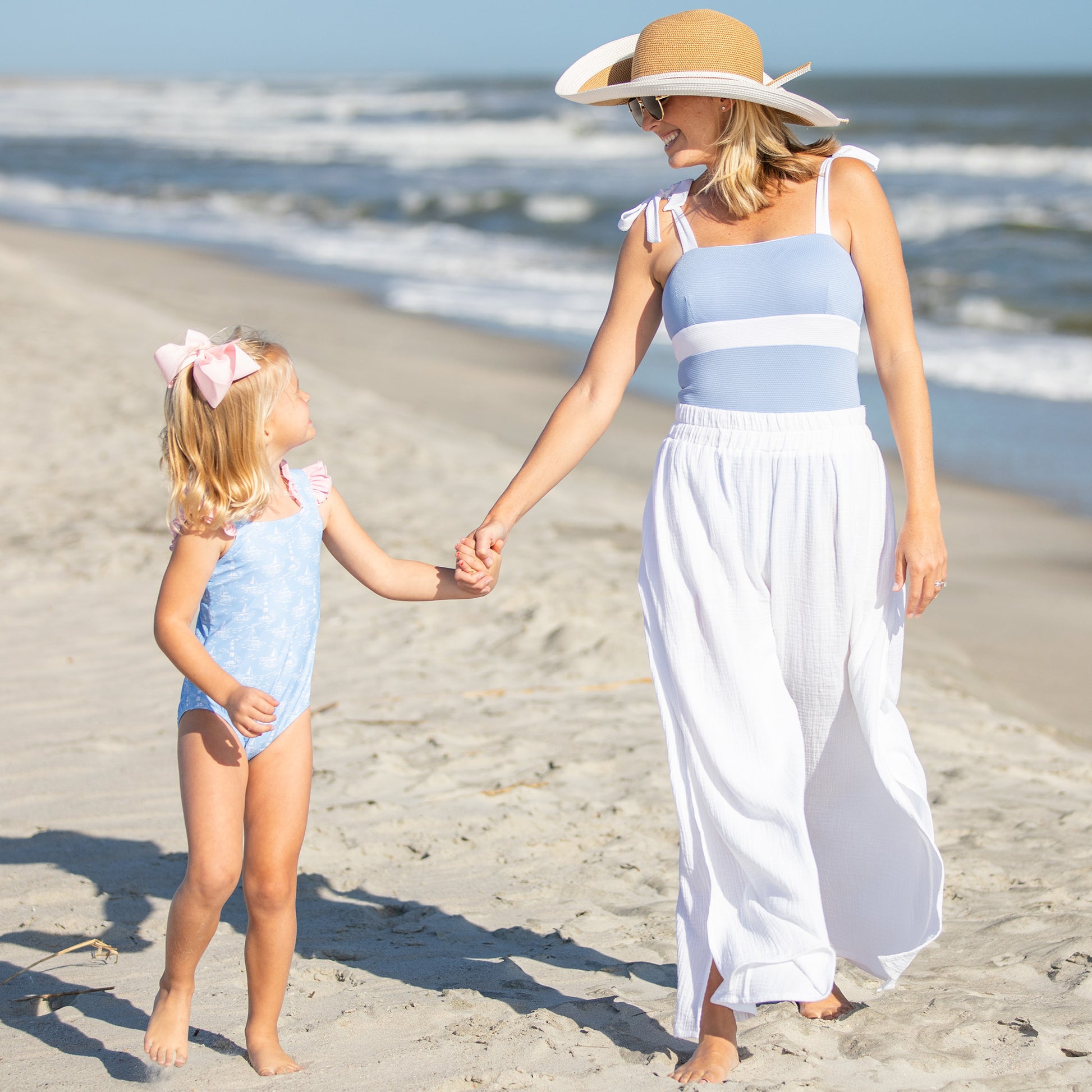 You will love swimming at the pool or beach, matching your entire family during these spring and summer months! It looks fabulous when paired with our Women's Gauze Pool Beach Pants! And of course, the Morris Island Collection swimsuits will be perfect for the beach family photo opp!