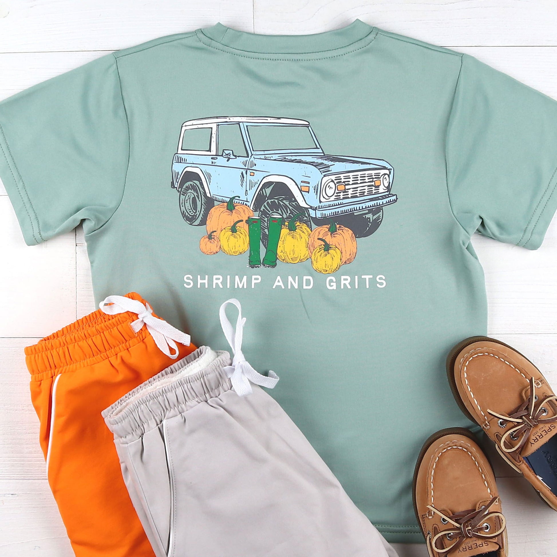 These comfy Shrimp Shorts coordinate with many of our collections and are ideal for mixing and matching with his wardrobe. And with our Blue Stripe, Pink Stripe, and Pumpkins collections, the matching sibling outfits will make a great pumpkin patch photo opp!