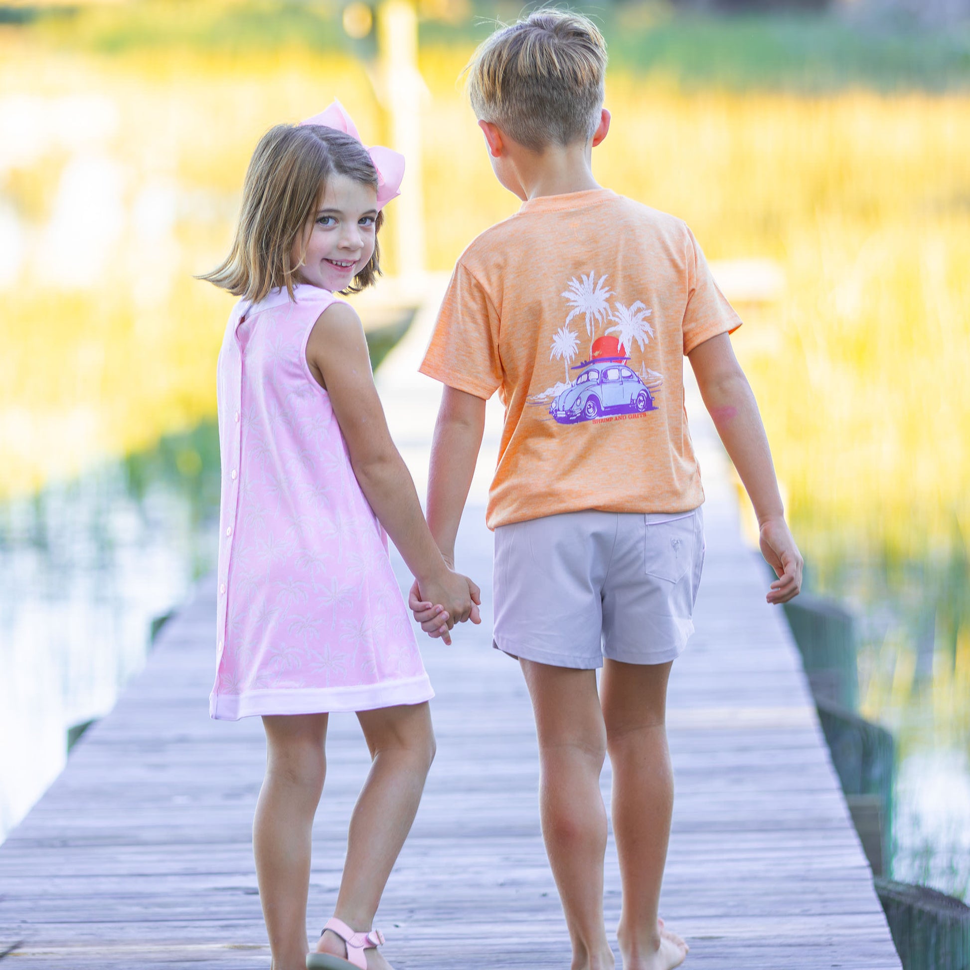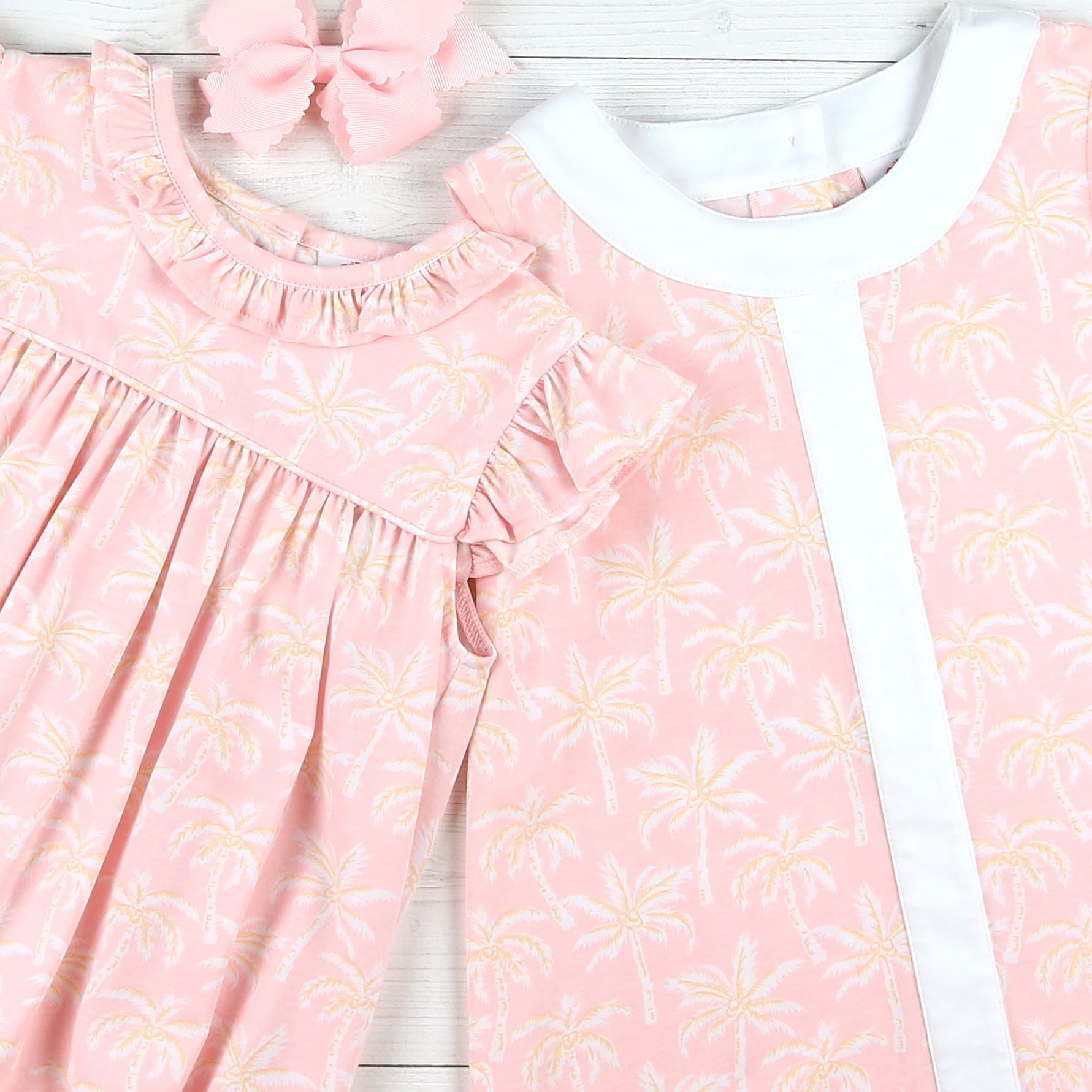 Your daughter will not want to part with it through the spring and summer season! And she, and her siblings, can have coordinating outfits with our Palm Paradiseย collection and the boys Palm Banded Boardies or Palm Cruiser Graphic tee, for that paradise vaca photo!
