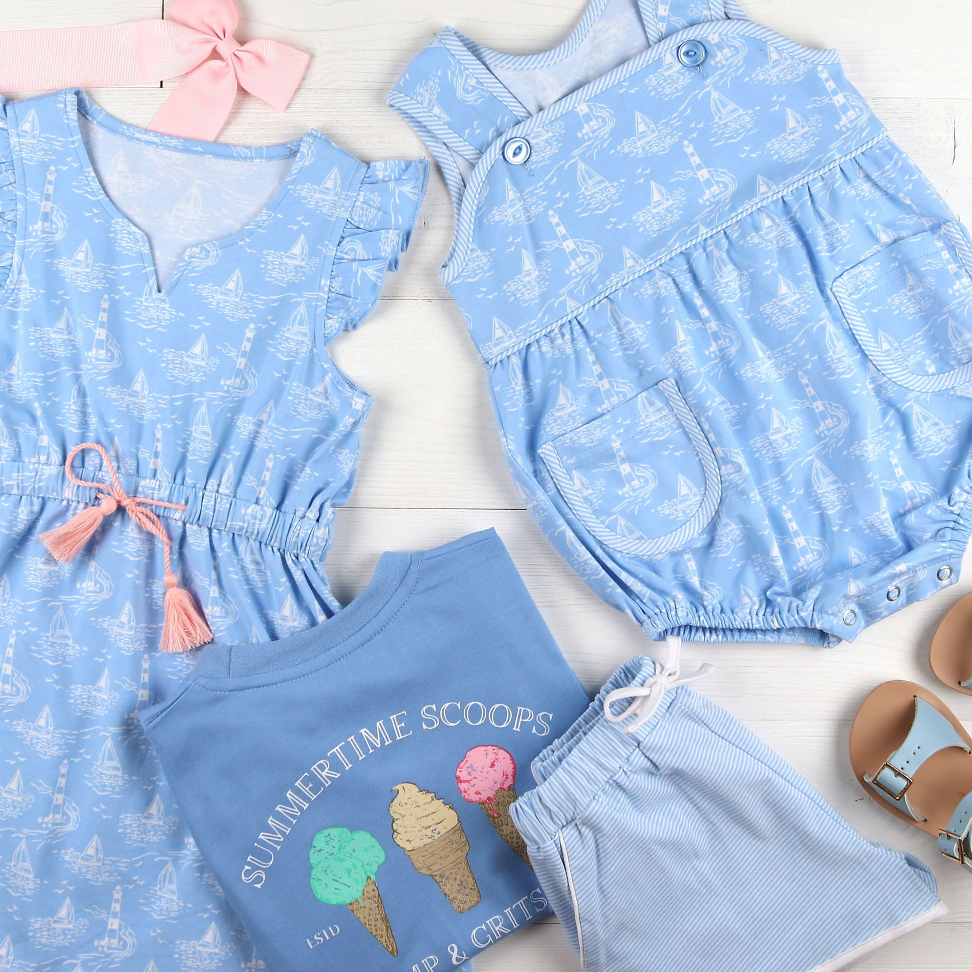 Perfect for all Spring and summer activities, especially for that beach vacation! And with our Morris Island Collection, siblings can have matching outfits!