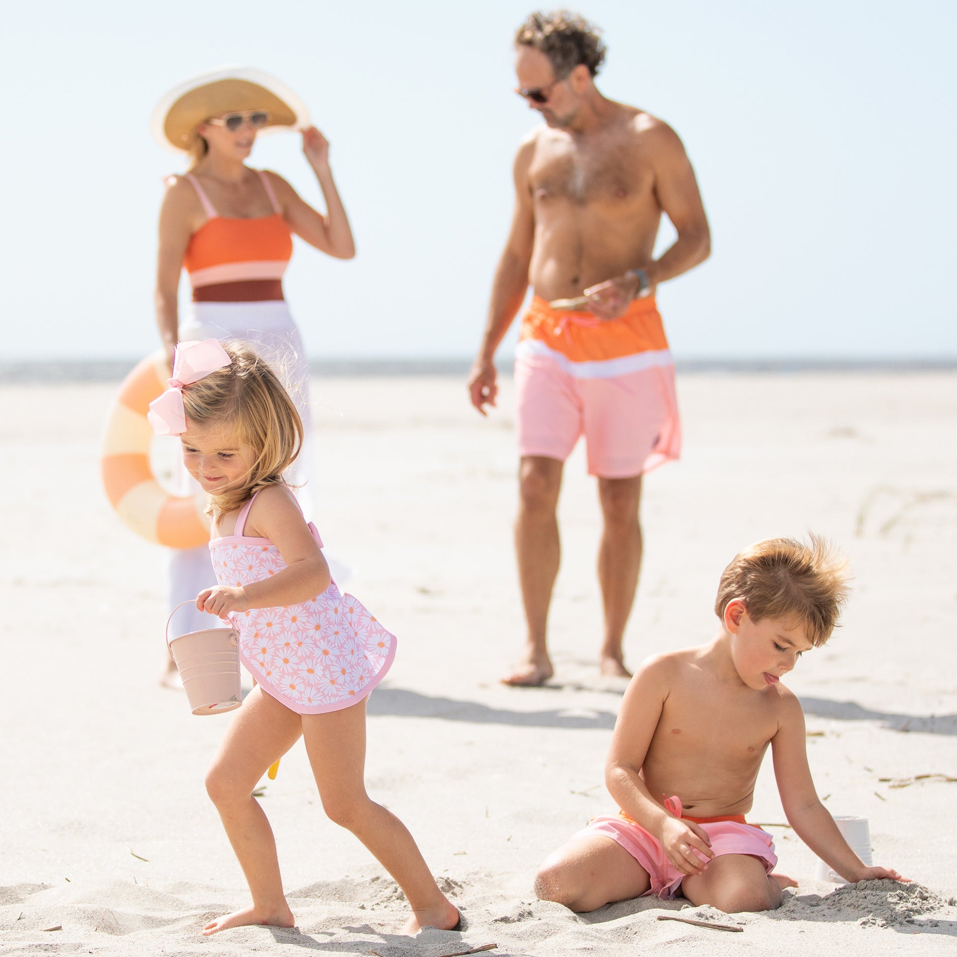 With our Sunny Colorblock and Sunny Daisy Collections, he can have matching swimwear with his entire family!!