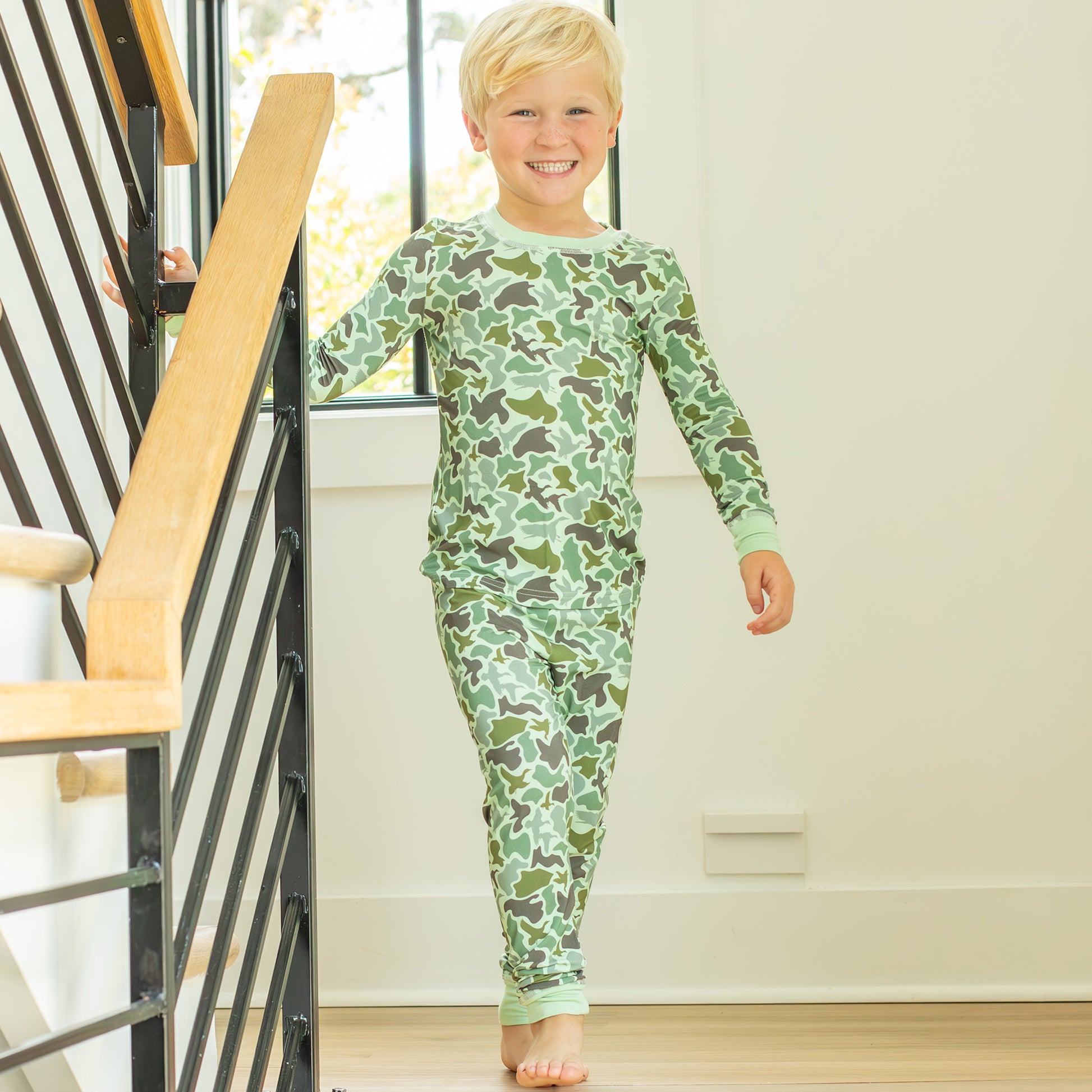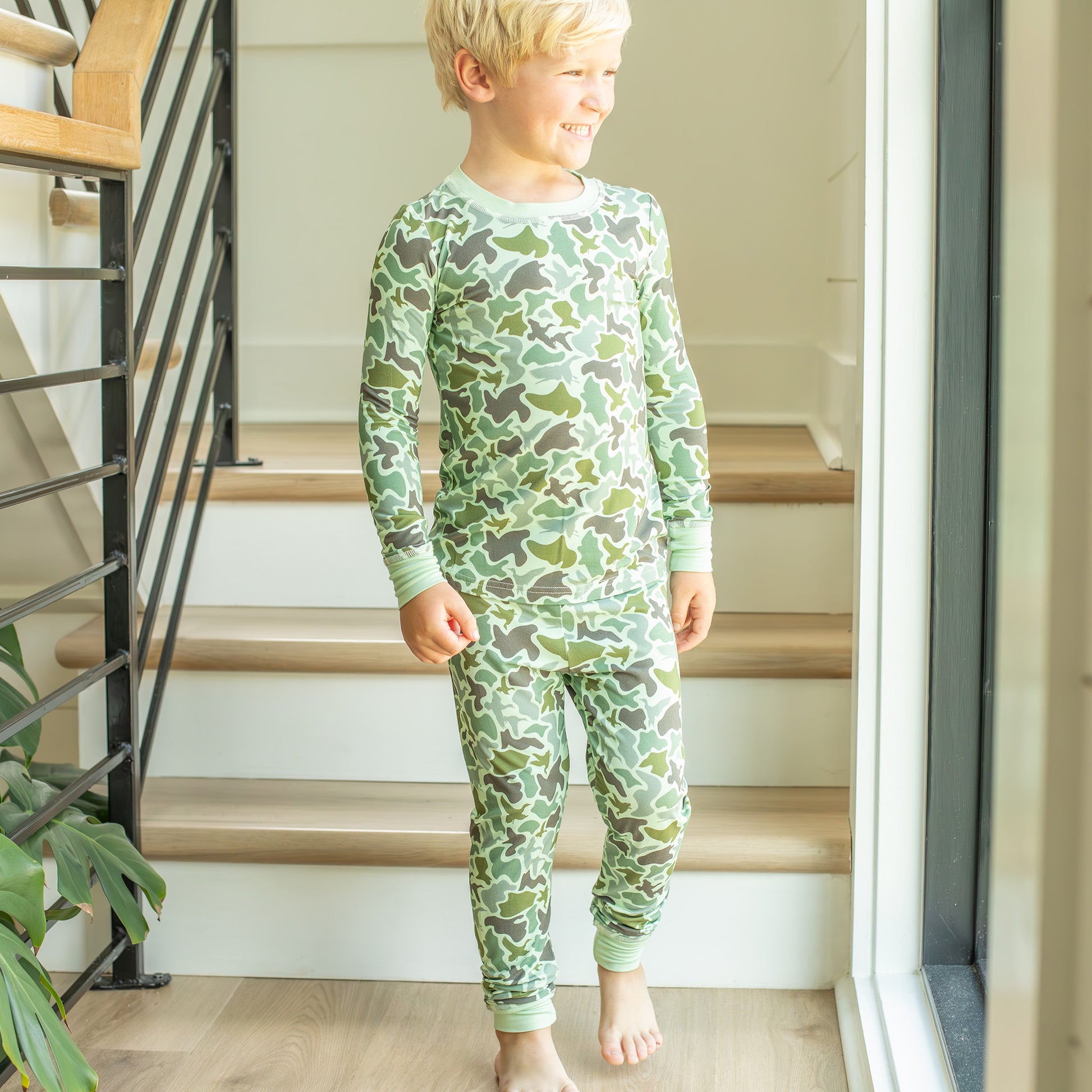 Perfect kid pajamas for military or hunting families.ย Of course, the kiddos will want to wear these pj's outside to help conceal them! Check out our Camo collection for coordinating family outfits. Will make such a fun photo opp!